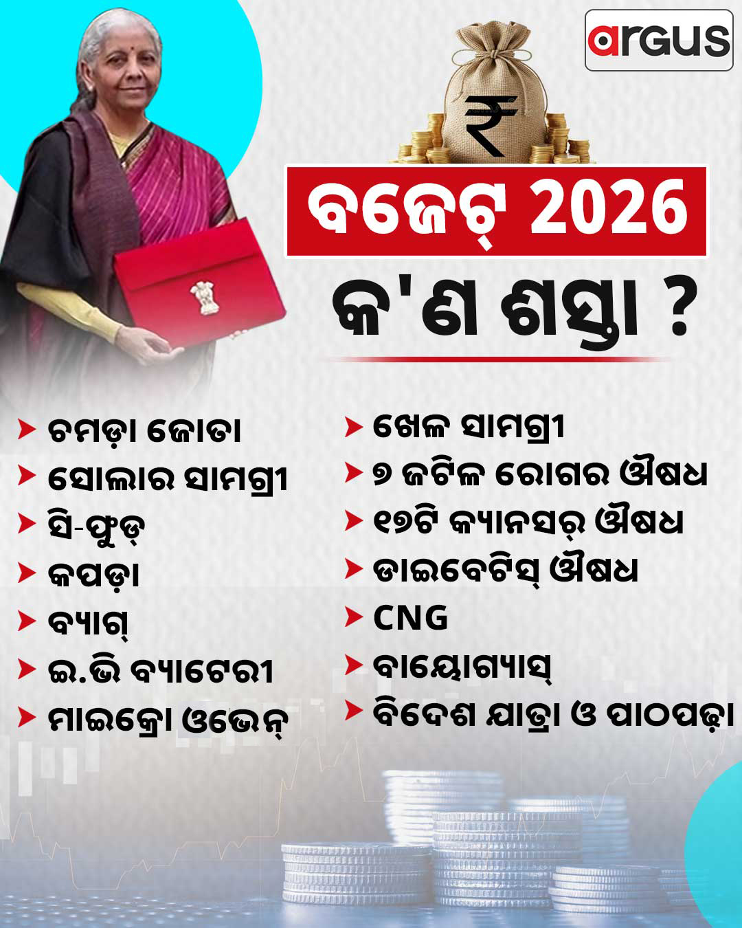 ଅର୍ଥମନ୍ତ୍ରୀ ନିର୍ମଳା ସୀତାରମଣ ଆଜି (ରବିବାର) ପୂର୍ଣ୍ଣାଙ୍ଗ କେନ୍ଦ୍ର ବଜେଟ୍ ୨୦୨୬ ଉପସ୍ଥାପନ କରିଛନ୍ତି । ସେ ନିଜ ଅଭିଭାଷଣରେ ଅର୍ଥମନ୍ତ୍ରୀ ଅନେକ ଗୁରୁତ୍ବପୂର୍ଣ୍ଣ ଘୋଷଣା କରିଛନ୍ତି । ସାଧାରଣତଃ ବଜେଟ୍ ଆସିଲେ ମଧ୍ୟବିତ୍ତମାନେ କଣ ଶସ୍ତା ହେବ ଓ କଣ ମହଙ୍ଗା ହେବ ତାହା ଉପରେ ବିଶେଷ ଭାବରେ ନଜର ରଖିଥାନ୍ତି । ତେବେ ଚଳିତ ବଜେଟ୍ରେ ମଧ୍ୟ ଏ ନେଇ ନିର୍ମଳା ଘୋଷଣା କରିଛନ୍ତି ।