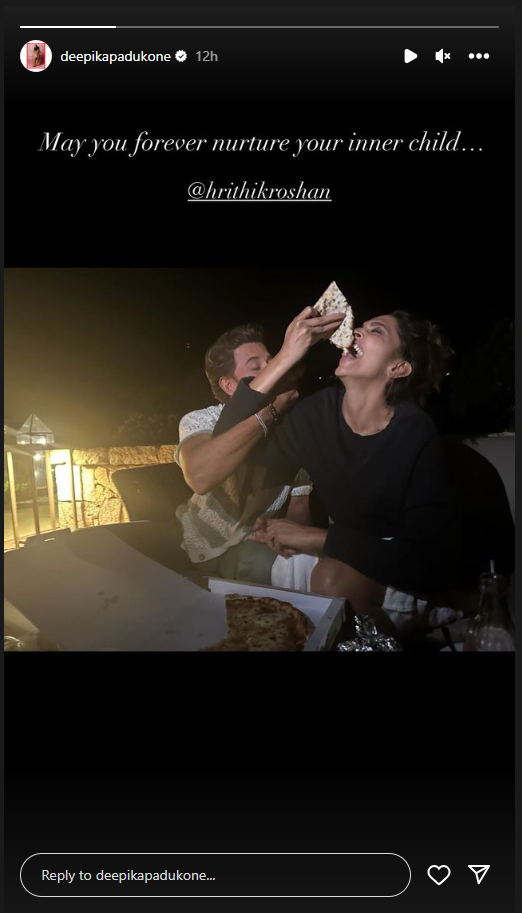Taking to Instagram, Deepika on Wednesday shared an unseen pic on her stories which she captioned, "May you forever nurture your inner child @hrithikroshan."