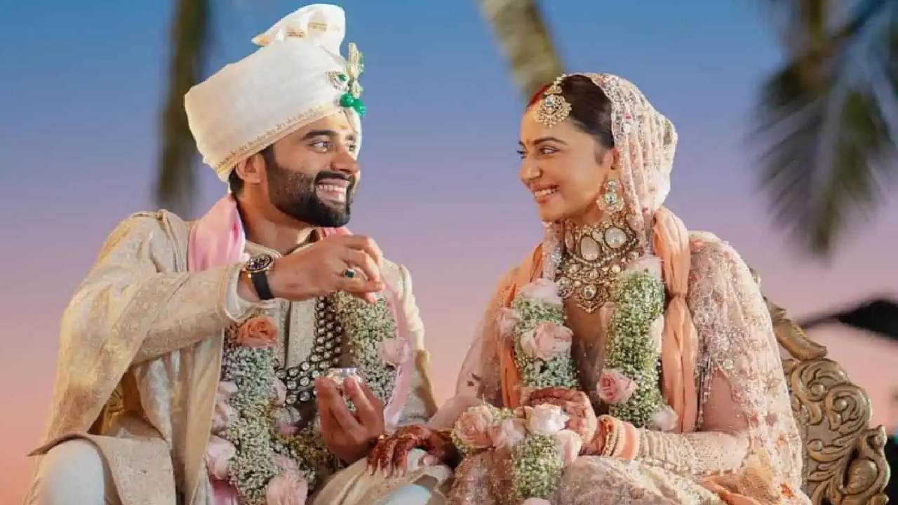 From Rakul's Floral lehenga to Jackky's Embroidered Sherwani, Check Out Their Wedding Looks