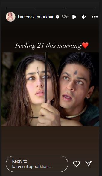 ✨Sharing a picture with superstar Shah Rukh Khan from their period film 'Asoka', she wrote "Feeling 21 this morning," followed by a red heart emoticon.