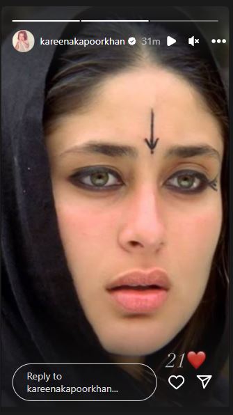 The next picture features Kareena's close-up look from the film. She captioned it, "21 (red heart emoticon)."