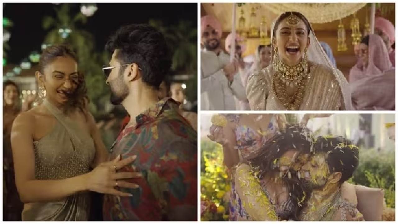 The clip documents Rakul and Jackky's adorable moments spent during their Mehendi, Haldi and Wedding Day functions.