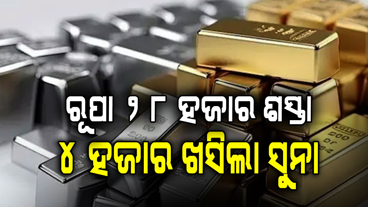 ଭୁବନେଶ୍ଵର: ସୁନା ଓ ରୁପା ଦର ଆଜି ପୁଣି ଥରେ ଖସିଛି । ଦୁଇ ଧାତୁର ମୂଲ୍ୟ ଖସିବା ସହ ଆଜି ସେୟାର ବଜାରରେ ନିରାଶା ଦେଖିବାକୁ ମିଳିଛି । ଘରୋଇ ବଜାରରେ ଆଜି ୧୦ ଗ୍ରାମ ସୁନା ପ୍ରତି ଦର ୧ ଲକ୍ଷ ୪୯ ହଜାର ରହିଥିବା ବେଳେ କେଜି ପିଛା ରୂପା ମୂଲ୍ୟ ୨ ଲକ୍ଷ ୫୨ ହଜାର ୭୫୦ ଟଙ୍କା ରହିଛି ।