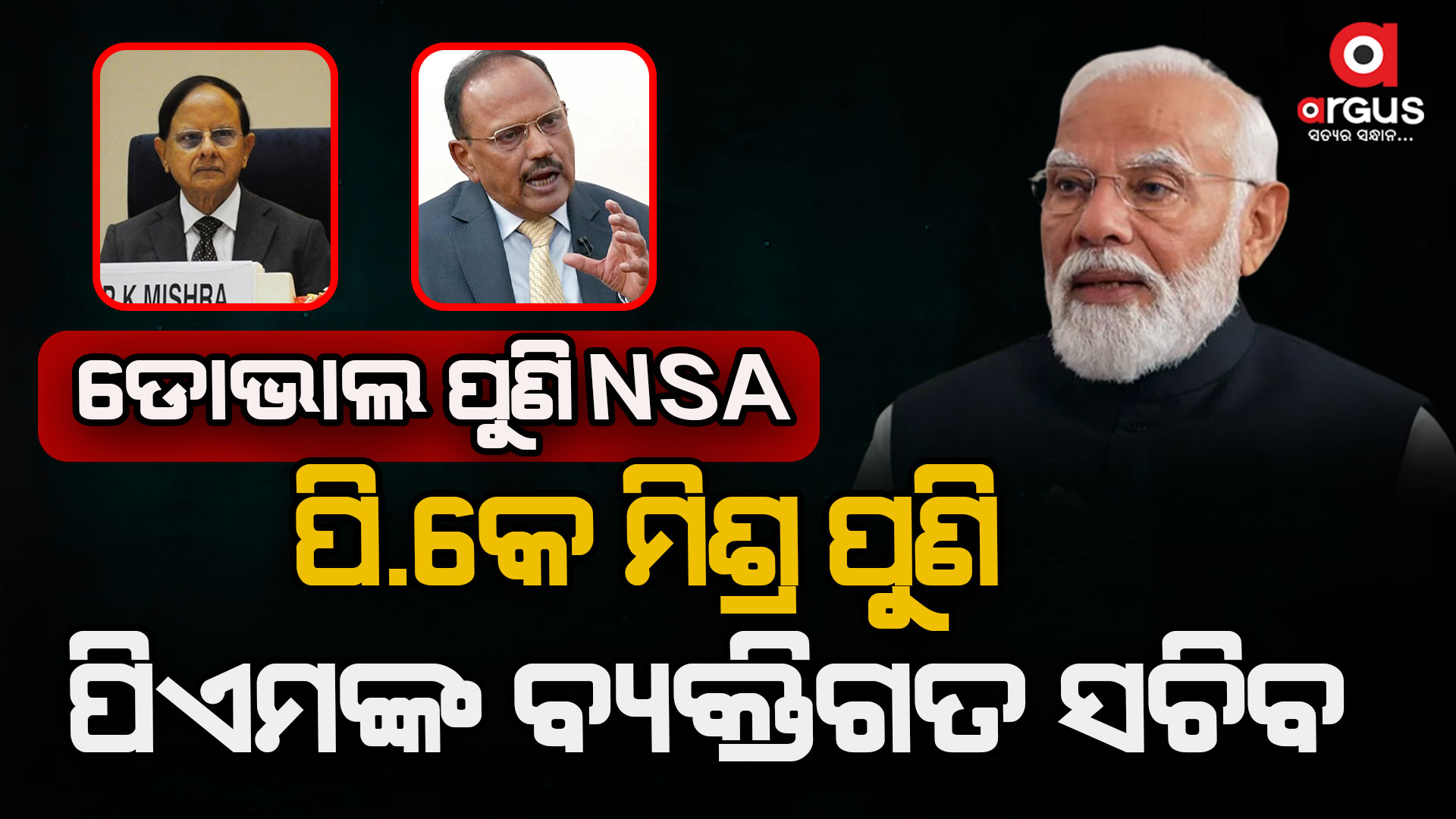 ଅଜିତ ଡୋଭାଲ ପୁଣି ଜାତୀୟ ସୁରକ୍ଷା ପରାମର୍ଶଦାତା, ପିକେ ମିଶ୍ର ପୁଣି ପ୍ରଧାନମନ୍ତ୍ରୀଙ୍କ ବ୍ୟକ୍ତିଗତ ସଚିବ