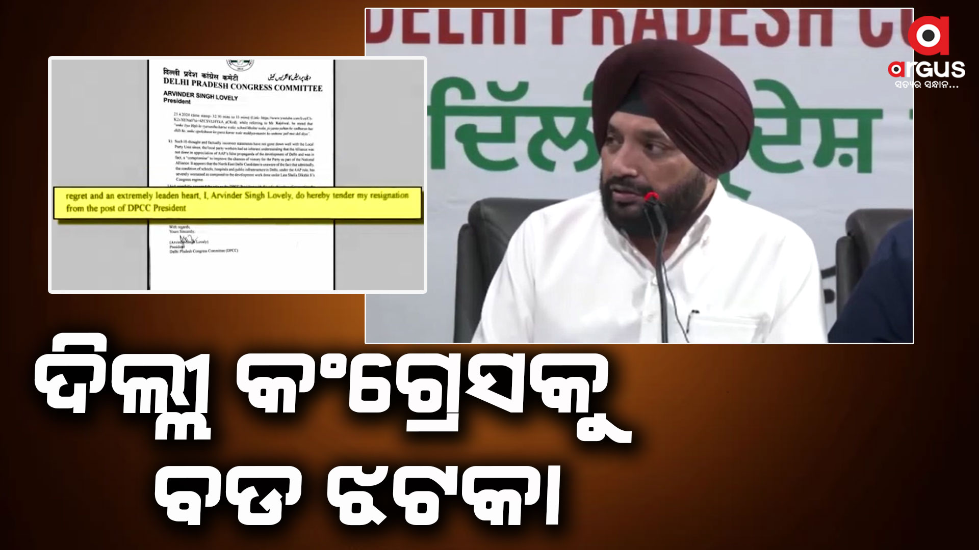 ଅର୍ଗସ ବ୍ୟୁରୋ : ଲୋକସଭା ନିର୍ବାଚନ ପୂର୍ବରୁ ଦିଲ୍ଲୀରେ କଂଗ୍ରେସକୁ ଲାଗିଛି ବଡ ଝଟକା । ଦଳର ରାଜ୍ୟ ସଭାପତି ଅରବିନ୍ଦର ସିଂ ଲଭଲି ତାଙ୍କ ପଦରୁ ଇସ୍ତଫା ଦେଇଛନ୍ତି । ସେ ତାଙ୍କ ଇସ୍ତଫା କଂଗ୍ରେସ ରାଷ୍ଟ୍ରୀୟ ସଭାପତି ମଲ୍ଲିକାର୍ଜୁନ ଖଡଗେଙ୍କୁ ଚିଠି ଲେଖି ପଠାଇଛନ୍ତି । କୁହାଯାଉଛି ଯେ ଅରବିନ୍ଦର ସିଂ ଲଭଲି ଆମ୍ ଆଦମୀ ପାର୍ଟି ସହ ମେଣ୍ଟ ବିରୁଦ୍ଧରେ ଥିଲେ ।