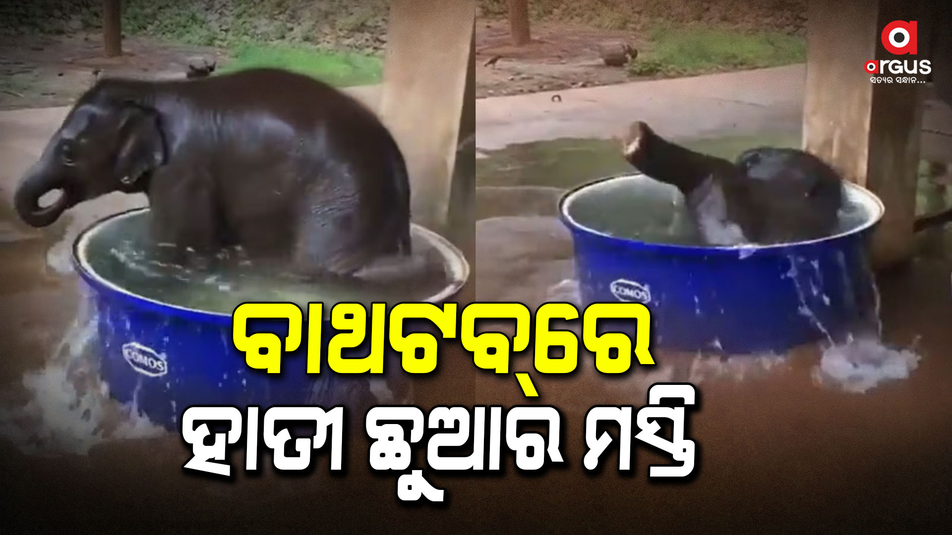 ହାତୀ ଛୁଆର ଗାଧୋଇବା ମସ୍ତି: ଭିଡିଓ ଭାଇରାଲ