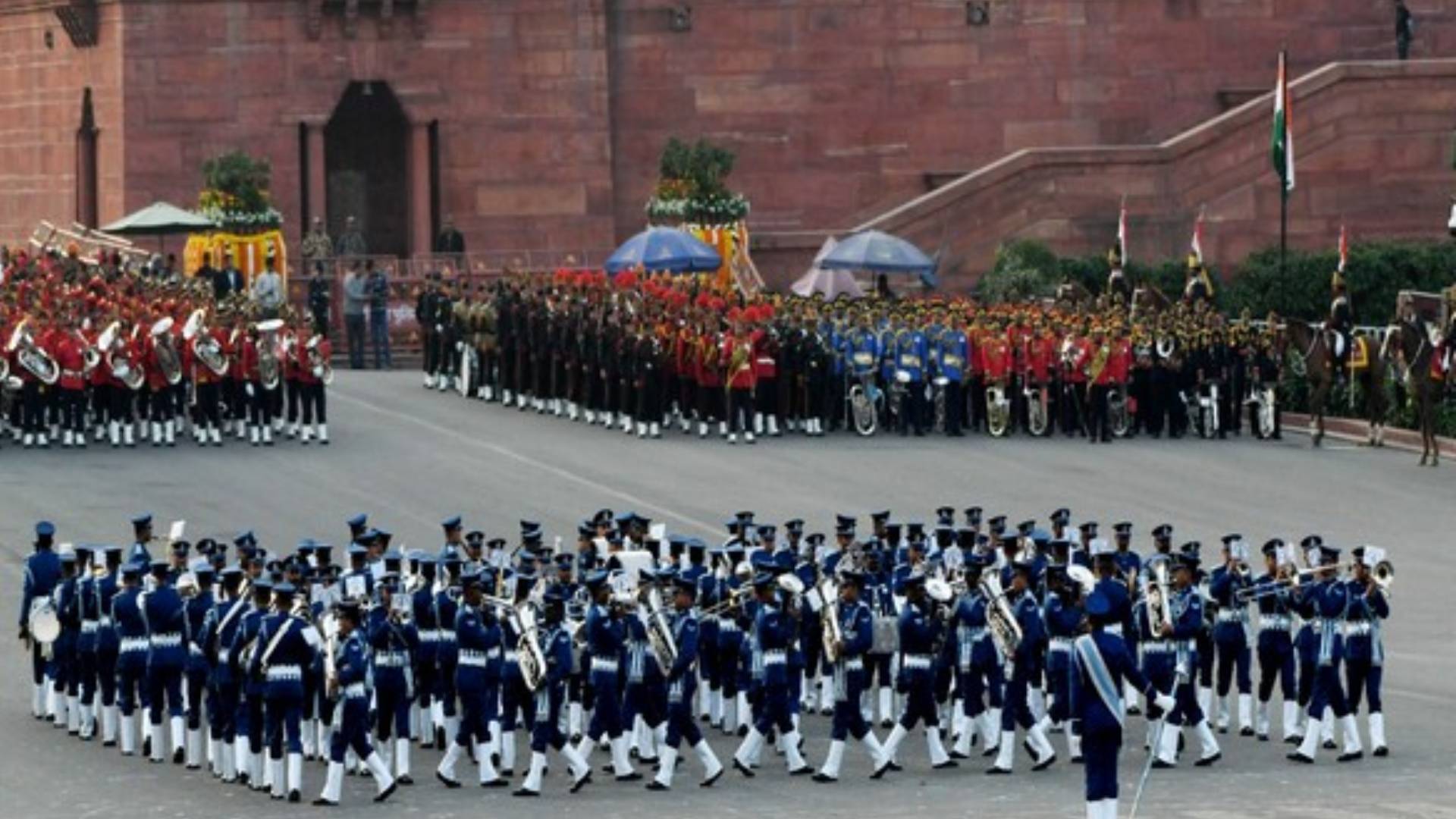 It said that the Massed Bands will then play the tunes ‘Kadam Kadam Badhaye Ja’, ‘Aye Mere Watan Ke Logon’ and ‘Drummers Call’.