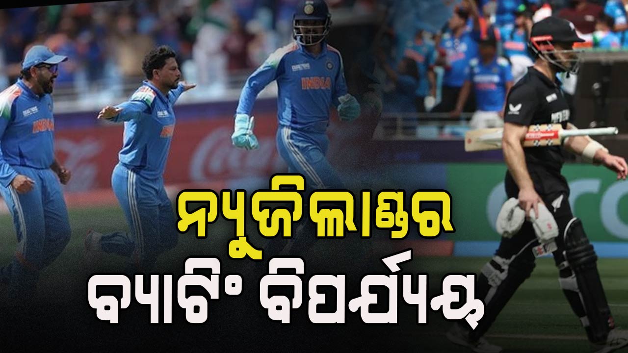 ଚାମ୍ପିଅନ୍ସ ଟ୍ରଫି ଫାଇନାଲ ମ୍ୟାଚ୍ରେ ନ୍ୟୁଜିଲାଣ୍ଡର ବ୍ୟାଟିଂ ବିପର୍ଯ୍ୟୟ । ଆରମ୍ଭରୁ ଦଳ ଧୁଆଁଧାର ବ୍ୟାଟିଂ କରୁଥିବା ବେଳେ ମାତ୍ର ୮ ଓଭରରେ ପ୍ରଥମ ଓ୍ୱିକେଟ୍ ହରାଇଥିଲା । ନ୍ୟୁଜିଲାଣ୍ଡର ପ୍ରଥମ ଓ୍ୱିକେଟ୍ ନେଇଥିଲେ ଭାରତର ବରୁଣ ଚକ୍ରବର୍ତ୍ତୀ । ତାପରେ କୂଳଦୀପ ଯାଦବ ୧୧ ତମ ଓଭର ବୋଲିଂ କରିବାକୁ ଆସି ଦ୍ୱିତୀୟ ଓ୍ୱିକେଟ୍ ନେଇଥିଲେ । ସେହିଭଳି ୧୩ ତମ ଓଭରରେ ମଧ୍ୟ ନ୍ୟୁଜିଲାଣ୍ଡର ତୃତୀୟ ଓ୍ୱିକେଟ୍ ଖସାଇଥିଲେ କୁଳଦୀପ ଯାଦବ ।