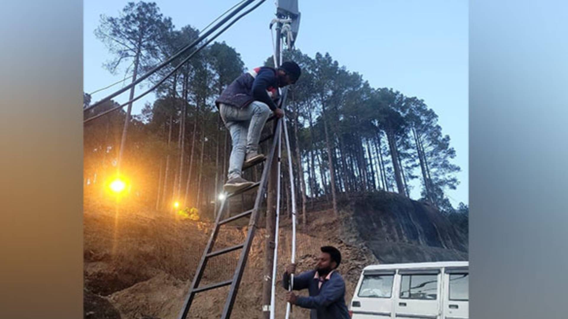 This is a hilltop location where vehicles can't go. There are no poles and no power. All these challenges have been surmounted and essential connectivity restored.