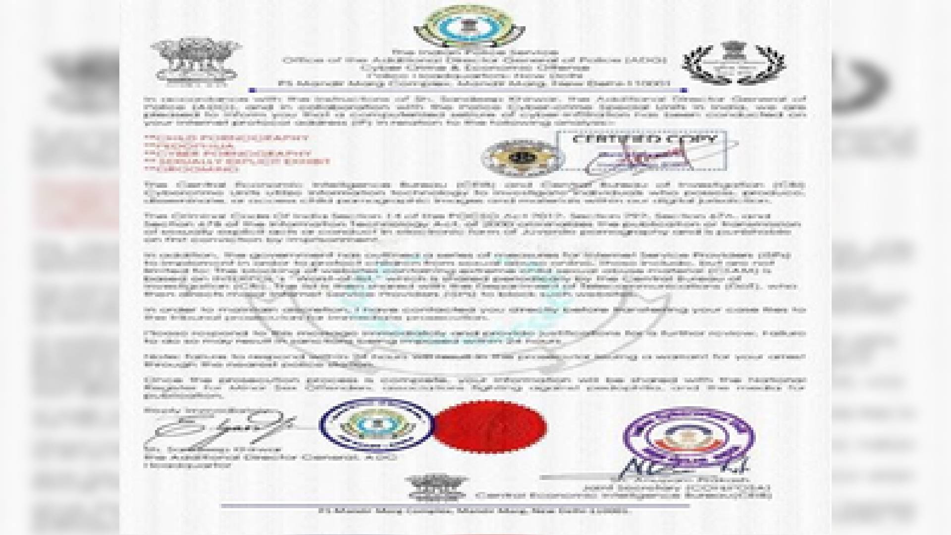 Such fake emails have a letter as attachment which bear the names and signatures of Sandeep Khirwar, ADG, Cyber Crime and Economic Offence, Delhi Police Headquarters, Delhi and that of Anupam Prakash, Joint Secretary (COFEPOSA), Central Economic Intelligence Bureau (CEIB), together with stamps and logos of CEIB, Intelligence Bureau and Cyber Cell, Delhi.