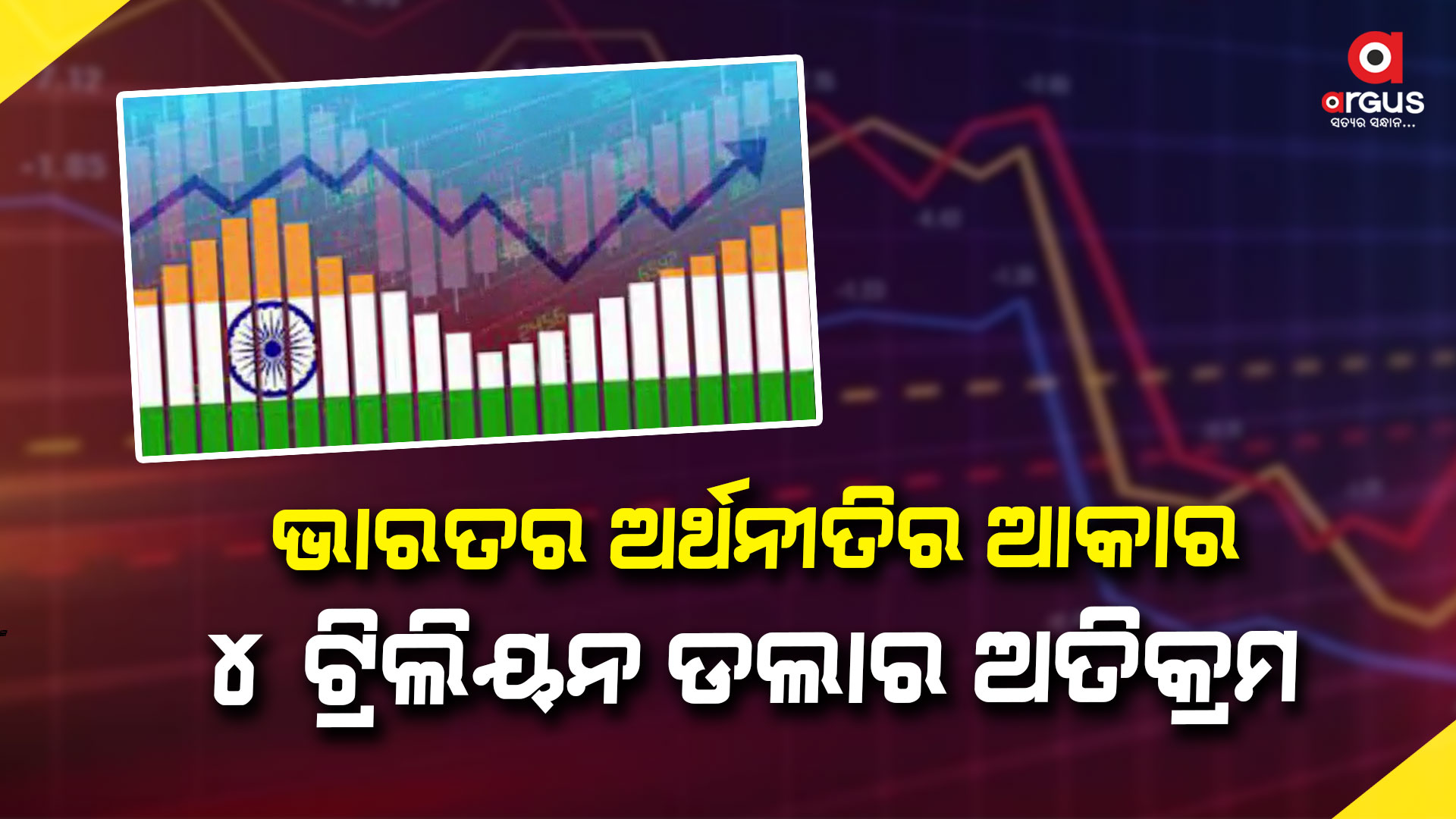 ଅର୍ଗସ ବ୍ୟୁରୋ: ଭାରତର ଅର୍ଥନୀତିର ଆକାର ପ୍ରଥମ ଥର ପାଇଁ ୪ ଟ୍ରିଲିୟନ ଡଲାର ଅତିକ୍ରମ କରିଛି। ଏହା ସହ ଭାରତ ବର୍ତ୍ତମାନ ବିଶ୍ୱର ଚତୁର୍ଥ ବୃହତ୍ତମ ଅର୍ଥନୀତି ହେବାକୁ ଅତି ନିକଟତର ହୋଇଛି । ୫ ଟ୍ରିଲିୟନ ଡଲାର ଅର୍ଥନୀତି ହେବାର ଲକ୍ଷ୍ୟ ହାସଲ କରିବା ଦିଗରେ ଏହା ମଧ୍ୟ ଏକ ଗୁରୁତ୍ୱପୂର୍ଣ୍ଣ ମାଇଲଖୁଣ୍ଟ ହାସଲ କରିଛି। ଜିଡିପି ଲାଇଭ ତଥ୍ୟ ଅନୁଯାୟୀ ୧୮ ନଭେମ୍ବରରେ ବିଳମ୍ବିତ ରାତିରେ ଭାରତ ଏହି ମାଇଲଖୁଣ୍ଟ ହାସଲ କରିଛି। ନଭେମ୍ବର ୧୮, ୨୦୨୩ ରେ, ରାତି ପ୍ରାୟ ୧୦:୩୦ ସମୟରେ, ଭାରତର ଜିଡିପି ଆକାର ପ୍ରଥମ ଥର ପାଇଁ ୪ ଟ୍ରିଲିୟନ ଡଲାର ଅତିକ୍ରମ କରିଥିଲା।
