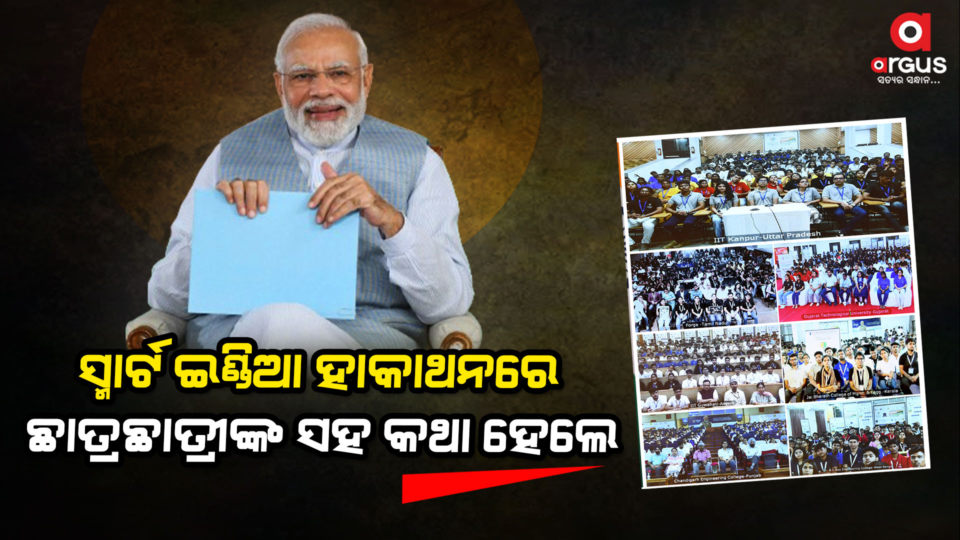 ଅର୍ଗସ ବ୍ୟୁରୋ: ସ୍ମାର୍ଟ ଇଣ୍ଡିଆ ହାକାଥନ୍ 2023ର ଗ୍ରାଣ୍ଡ ଫାଇନାଲ୍ ଅଂଶଗ୍ରହଣକାରୀଙ୍କ ସହ ଭିଡିଓ କନଫରେନ୍ସିଂ ମାଧ୍ୟମରେ କଥା ହେଲେ ପ୍ରଧାନମନ୍ତ୍ରୀ ମୋଦୀ । ଏହି ଅବସରରେ ପ୍ରଧାନମନ୍ତ୍ରୀ ଅଂଶଗ୍ରହଣକାରୀଙ୍କୁ ସମ୍ବୋଧିତ କରିଛନ୍ତି।