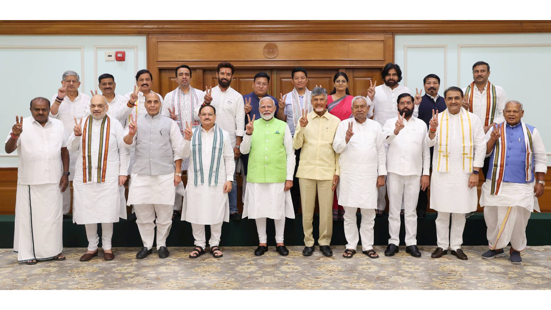All pre-poll allies including TDP chief N. Chandrababu Naidu and JD-U leader and Bihar Chief Minister Nitish Kumar along with other leaders of the alliance participated in discussions to finalise the modalities for the NDA government's formation for the third consecutive term.