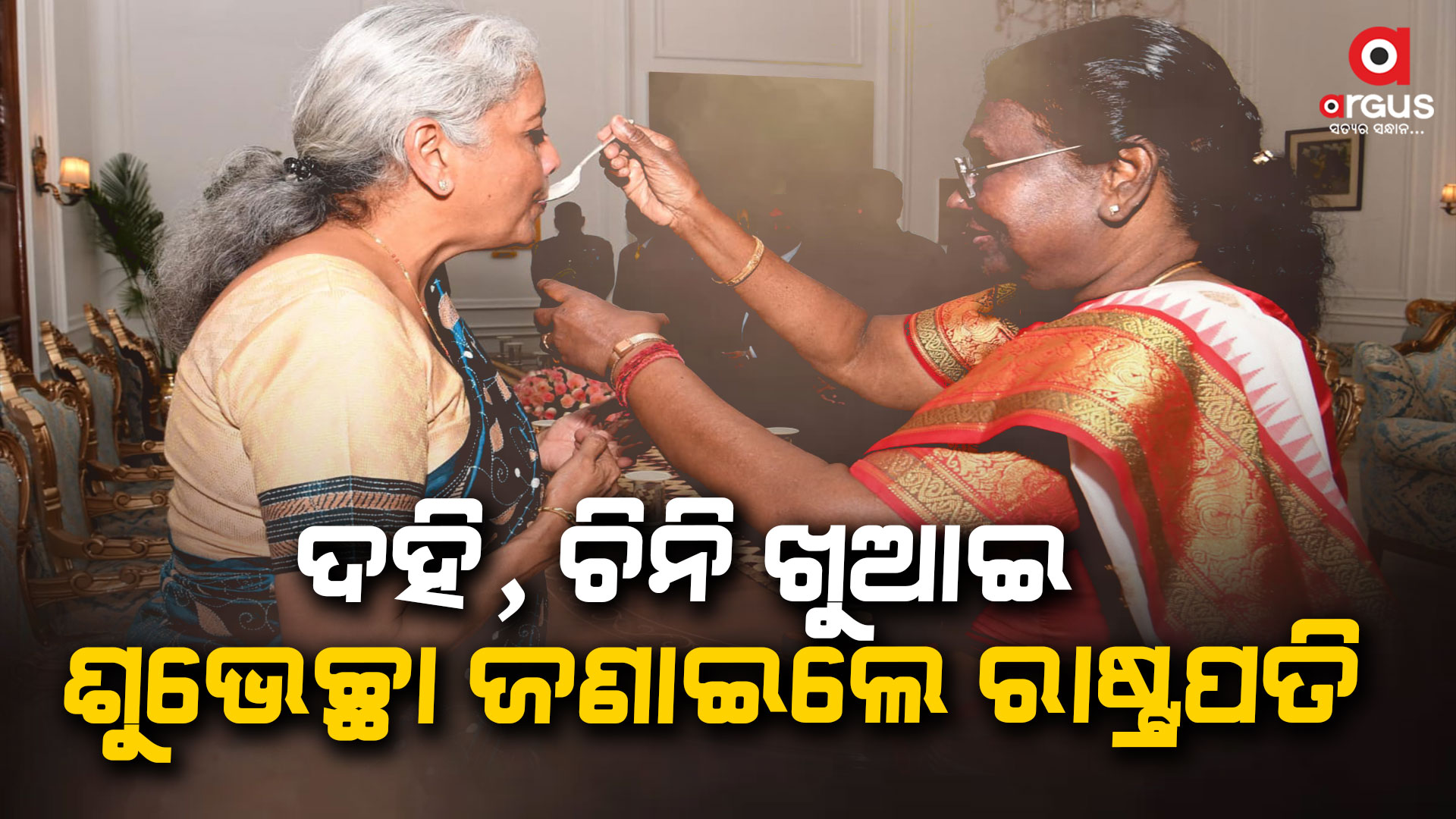 ଏହା ପୂର୍ବରୁ ରାଷ୍ଟ୍ରପତି ଦ୍ରୌପଦୀ ମୁର୍ମୁଙ୍କୁ ଭେଟିଥିଲେ କେନ୍ଦ୍ର ଅର୍ଥ ମନ୍ତ୍ରୀ ନିର୍ମଳା ସୀତାରମଣ । ତାଙ୍କ ସହିତ ଅର୍ଥ ରାଷ୍ଟ୍ରମନ୍ତ୍ରୀ ପଙ୍କଜ ଚୌଧୁରୀ ଓ ଭାଗବତ କିଶନରା ଓ କରାଡ ଏବଂ ଅର୍ଥ ସଚିବ ଟିଭି ସୋମନାଥନ ପ୍ରମୁଖ ମଧ୍ୟ ରାଷ୍ଟ୍ରପତିଙ୍କୁ ଭେଟିଥିଲେ । ଏହି ଅବସରରେ ଦହି, ଚିନି ଖୁଆଇ ଶୁଭେଚ୍ଛା ଜଣାଇଲେ ରାଷ୍ଟ୍ରପତି । ଏହି ବଜେଟରେ ଚାଷୀଙ୍କଠାରୁ ଆରମ୍ଭ କରି ମହିଳାଙ୍କ ହିତ ପାଇଁ ଅନେକ କିଛି ବଜେଟ୍ରେ ଉପସ୍ଥାପନା କରିପାରନ୍ତି। ଅଥର୍ମନ୍ତ୍ରୀ ବାହାରକୁ ବାହାରିବା ସମୟର ଫଟୋ ସାମ୍ନାକୁ ଆସିଥିଲା।