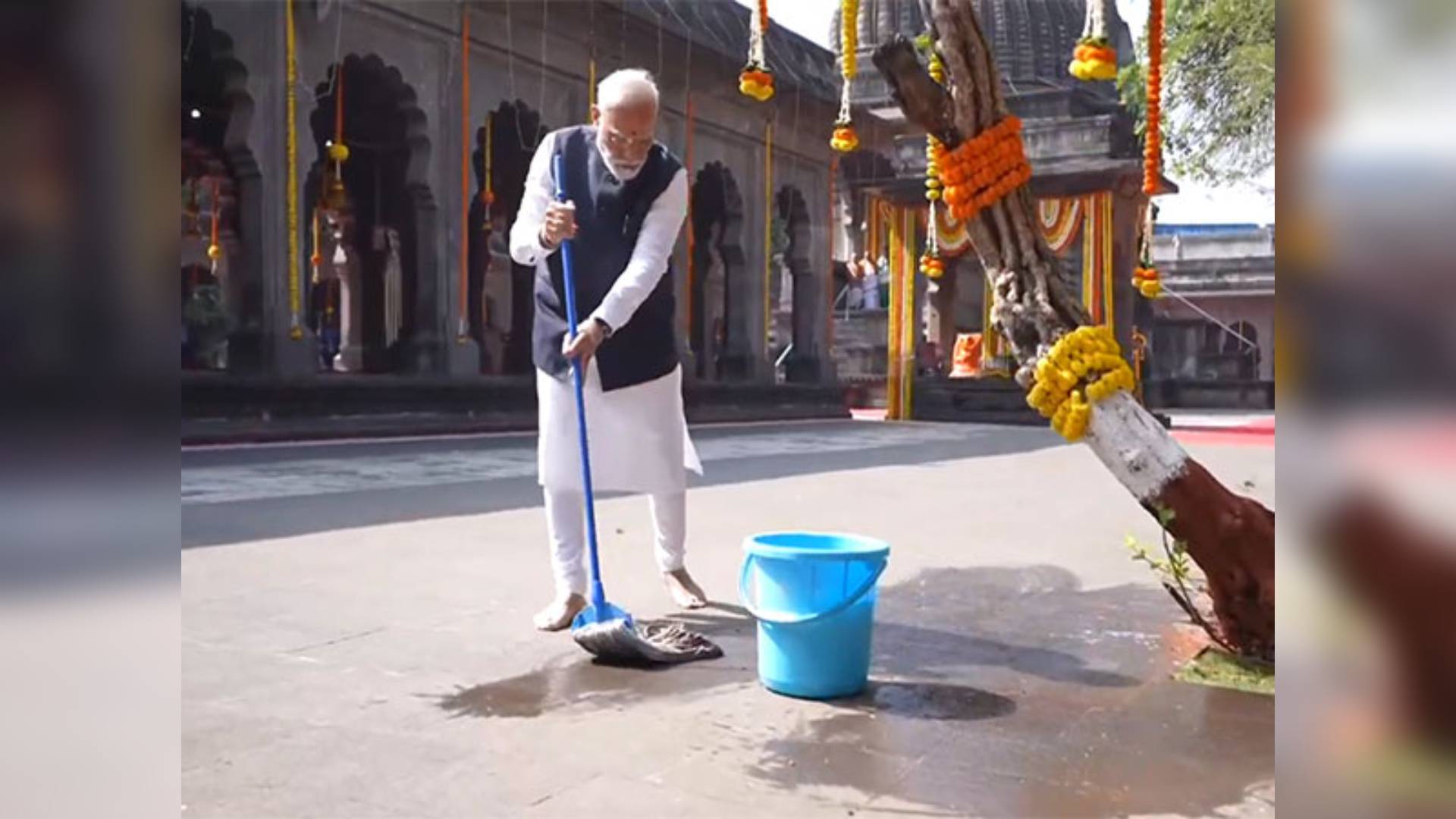 Prime Minister Narendra Modi on Friday cleaned the premises of the Kalaram Temple in Maharashtra's Nashik as part of Swachchata Abhiyan campaign.