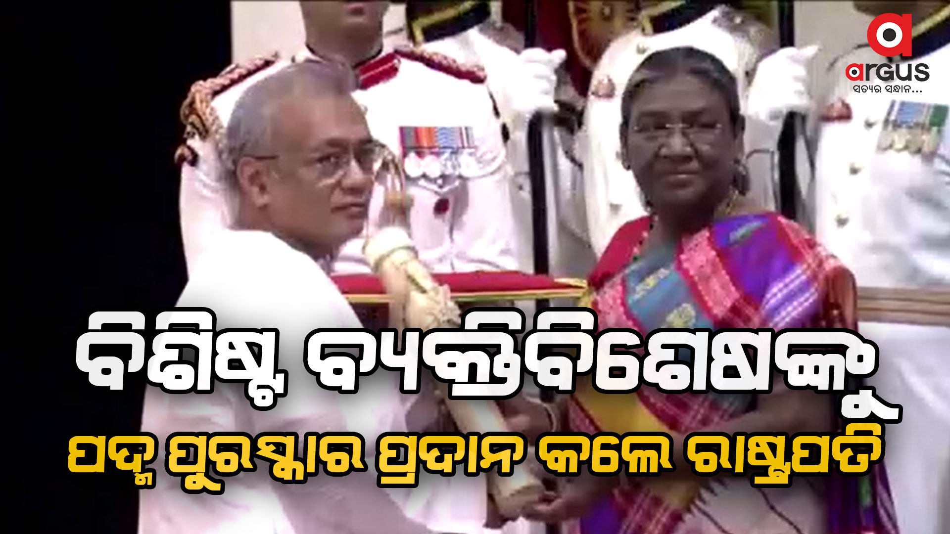 ଅର୍ଗସ ବ୍ୟୁରୋ: ବିଭିନ୍ନ କ୍ଷେତ୍ରରେ ଖ୍ୟାତି ଅର୍ଜନ କରିଥିବା ବିଶିଷ୍ଟ ବ୍ୟକ୍ତିବିଶେଷଙ୍କୁ ପଦ୍ମ ପୁରସ୍କାର ପ୍ରଦାନ କରିଛନ୍ତି ରାଷ୍ଟ୍ରପତି ଦ୍ରୌପଦୀ ମୁର୍ମୁ। ରାଷ୍ଟ୍ରପତି ଭବନରେ ଏକ ସ୍ୱତନ୍ତ୍ର କାର୍ଯ୍ୟକ୍ରମରେ ଏହି ପୁରସ୍କାର ପ୍ରଦାନ କରାଯାଇଛି। ହିନ୍ଦୁସ୍ଥାନୀ ଶାସ୍ତ୍ରୀୟ ଗାୟକ ସୋମ ଦତ୍ତ ବିଟ୍ଟୁ, କୃଷି ପାଇଁ ସତ୍ୟନାରାୟଣ ବେଲେରୀ, ବରିଷ୍ଠ ସାମ୍ବାଦିକ ହୌର୍ମୁସଜି ଏନ.କାମାଙ୍କୁ ପଦ୍ମଭୂଷଣ, ସତ୍ୟବର୍ତ୍ତ ମୁଖାର୍ଜୀଙ୍କୁ ମରୋଣୋତ୍ତର ପଦ୍ମଭୂଷଣ, ବରିଷ୍ଠ ଅଭିନେତ୍ରୀ ବୈଜୟନ୍ତୀମାଲା ଓ ଅଭିନେତା ଚିରଞ୍ଜୀବିଙ୍କୁ ପଦ୍ମ ଭୂଷଣ ସମ୍ମାନରେ ସମ୍ମାନିତ କରାଯାଇଛି। ସେହିପରି ଖେଳ କ୍ଷେତ୍ରରେ ଯୋଗଦାନ ପାଇଁ ଜୋଶନା ଚିନ୍ନପାଙ୍କୁ ପଦ୍ମଶ୍ରୀ, ଆଣ୍ଡାମାନ ଓ ନିକୋବରର ମହିଳା କୃଷକ କେ.ଚେଲ୍ଲାମ୍ମଲଙ୍କୁ କୃଷି ପାଇଁ ପଦ୍ମଶ୍ରୀ, ମୂର୍ତ୍ତି ନିର୍ମାଣକାରୀ ଏ.ବେଲୁ ଆନନ୍ଦ ଚାରୀଙ୍କୁ ପଦ୍ମଶ୍ରୀ ସମ୍ମାନରେ ସମ୍ମାନିତ କରାଯାଇଛି।