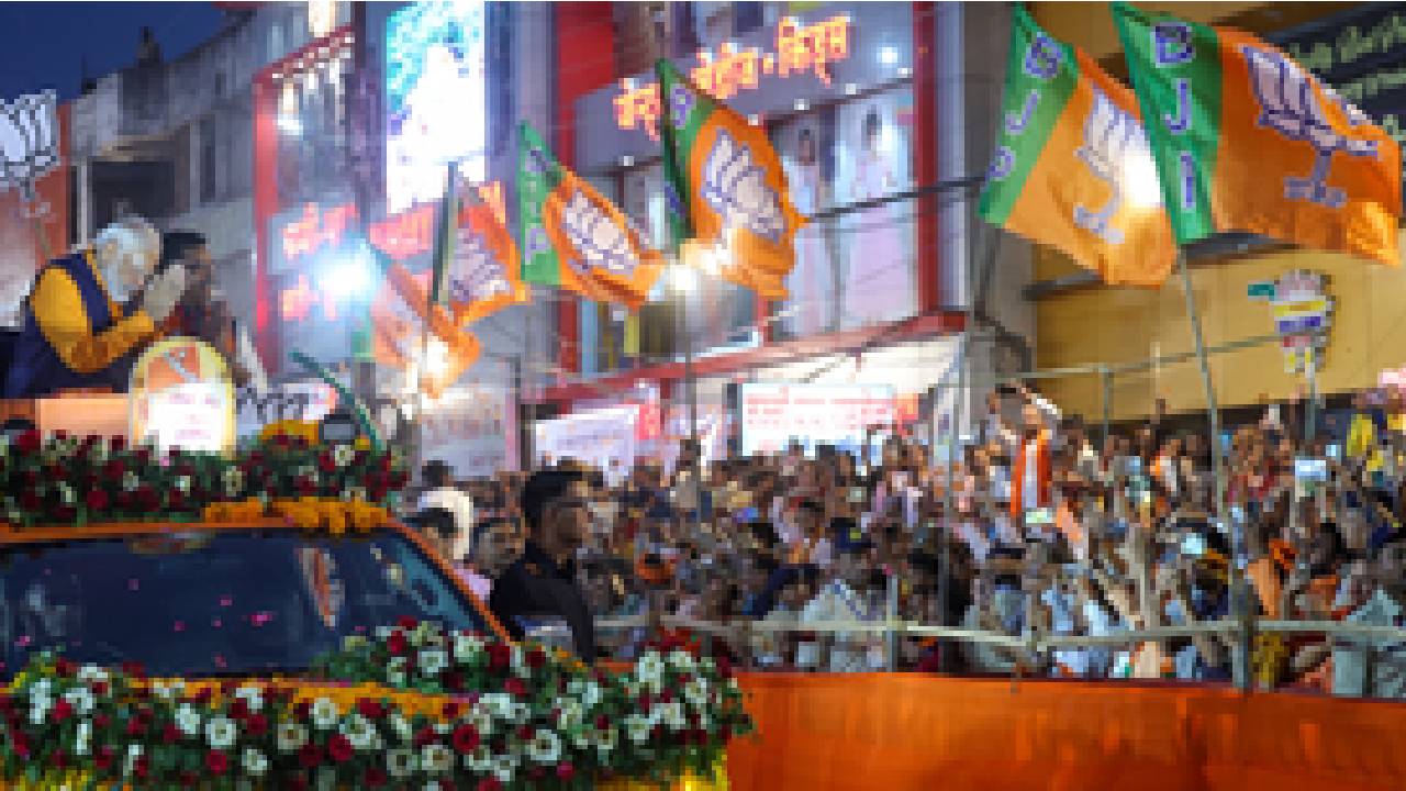 BJP flags were waved across the route through which PM Modi's convoy passed.