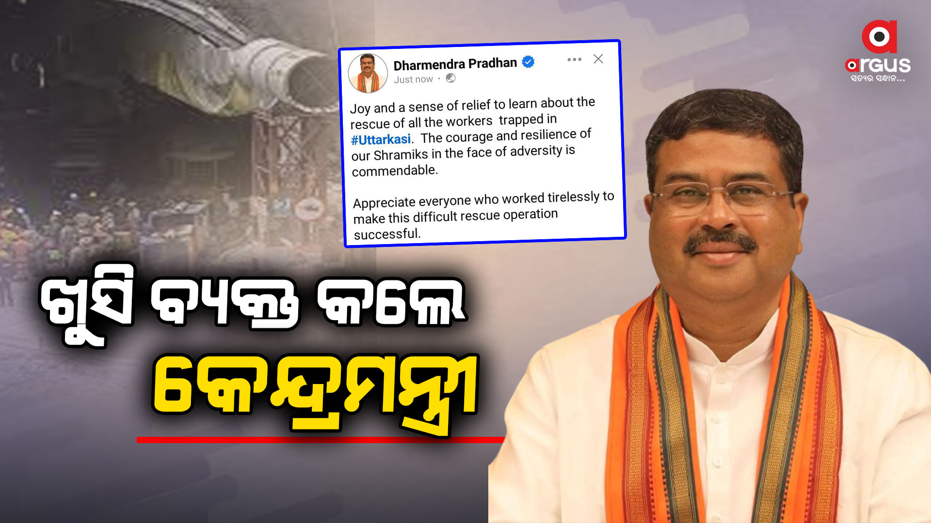 ଉଦ୍ଧାର କାର୍ଯ୍ୟର ସଫଳତାକୁ ନେଇ ସମସ୍ତଙ୍କୁ ଶୁଭେଛା ଜଣାଇଲେ କେନ୍ଦ୍ରମନ୍ତ୍ରୀ