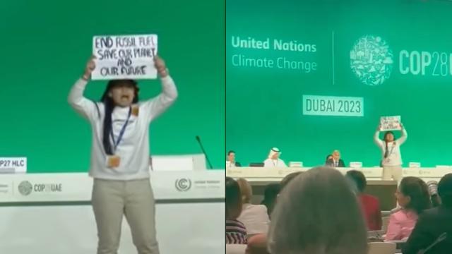 ମଞ୍ଚ ଉପରେ ୧୨ବର୍ଷିୟ ଭାରତୀୟ ଝିଅର ସାହସ: ପ୍ଲାକାର୍ଡ ଧରି କହିଲେ, ‘ଜୀବାଶ୍ମ ଇନ୍ଧନ ବ୍ୟବହାର ବନ୍ଦ କର