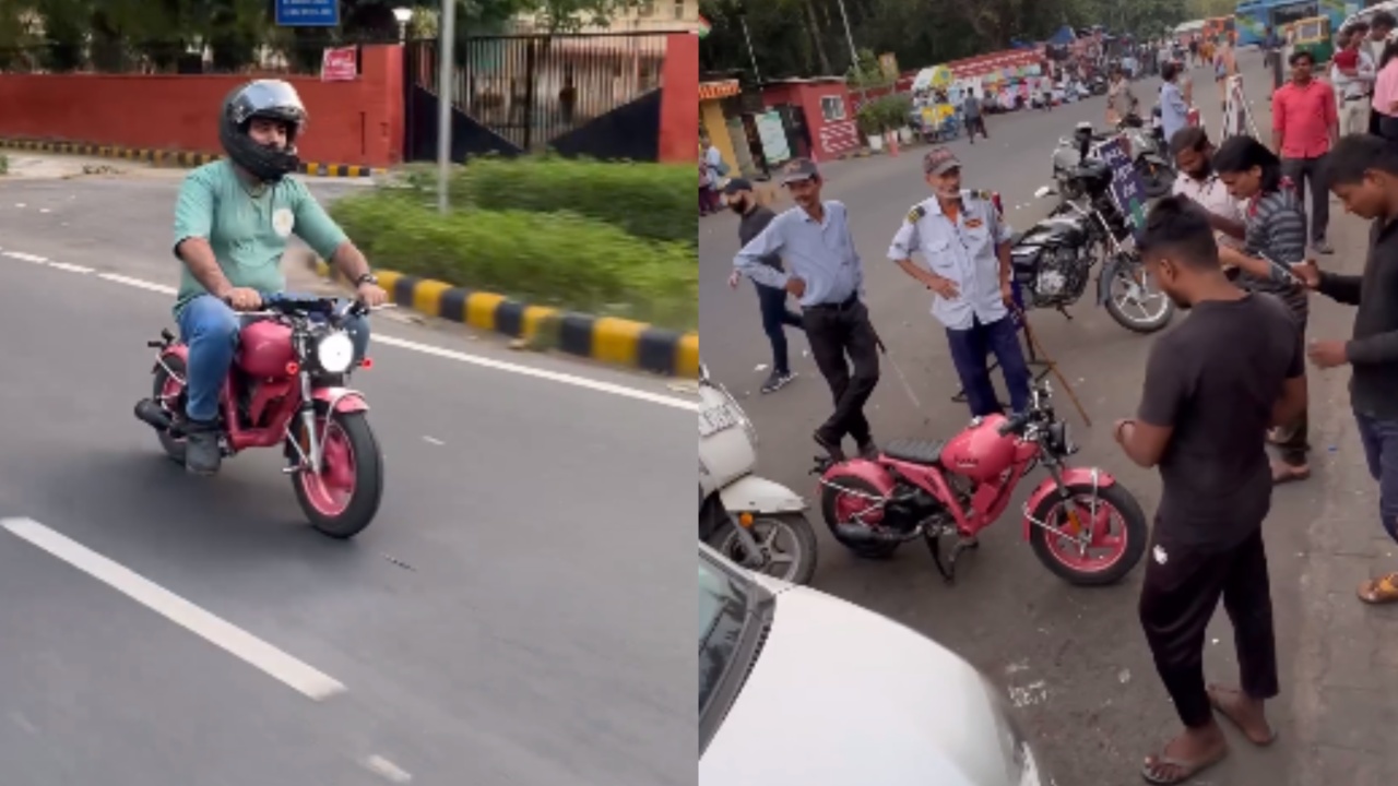 Watch: Man Rides Pink Mini Bullet On Streets Of Delhi; Video Goes Viral