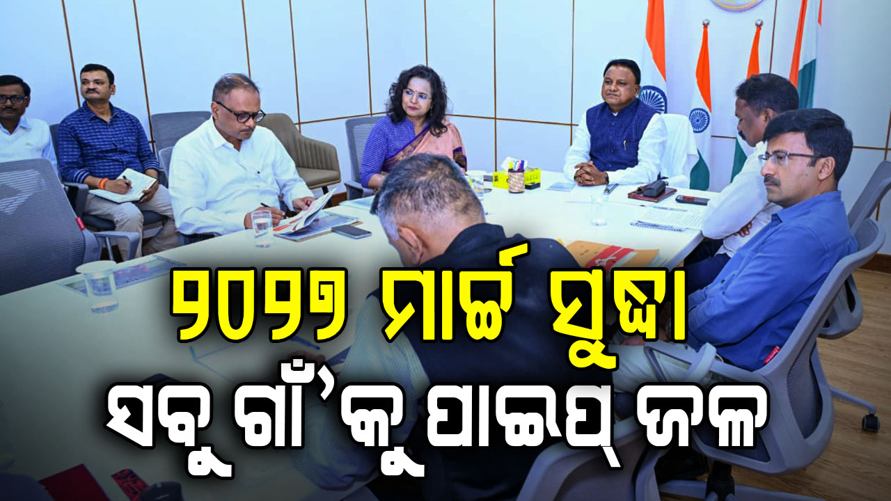 ମୁଖ୍ୟମନ୍ତ୍ରୀ ଶ୍ରୀ ମୋହନ ଚରଣ ମାଝୀ ଲୋକସେବା ଭବନ ଠାରେ ପଞ୍ଚାୟତିରାଜ ଓ ପାନୀୟ ଜଳ ବିଭାଗର ଗ୍ରାମୀଣ ପାନୀୟ ଜଳ ଯୋଗାଣ ବ୍ୟବସ୍ଥା ସମ୍ପର୍କରେ ସମୀକ୍ଷା କରି ୨୦୨୭ ମାର୍ଚ୍ଚ ସୁଦ୍ଧା ରାଜ୍ୟର ସବୁ ଗ୍ରାମକୁ ପାଇପ୍ ଜଳ ଯୋଗାଣ ସୁବିଧା ଯୋଗାଇଦେବାକୁ ନିର୍ଦ୍ଦେଶ ଦେଇଛନ୍ତି । ଏହାକୁ ମିଶନ୍ ମୋଡ୍ରେ କାର୍ଯ୍ୟକାରୀ କରି ନିର୍ଦ୍ଦିଷ୍ଟ ସମୟସୀମା ମଧ୍ୟରେ ଯେପରି ସମସ୍ତ ଗ୍ରାମଗୁଡ଼ିକୁ ପାନୀୟ ଜଳ ସୁବିଧା ଯୋଗାଇ ଦିଆଯିବ ସେଥିପ୍ରତି ସ୍ୱତନ୍ତ୍ର ଦୃଷ୍ଟି ଦେବାକୁ ମୁଖ୍ୟମନ୍ତ୍ରୀ ବିଭାଗକୁ ପରାମର୍ଶ ଦେଇଛନ୍ତି । ଆଦିବାସୀ ଅଧ୍ୟୁଷିତ ଅଞ୍ଚଳ ପ୍ରତି ବିଶେଷ ଦୃଷ୍ଟି ଦେବାକୁ ମୁଖ୍ୟମନ୍ତ୍ରୀ ବୈଠକରେ ଗୁରୁତ୍ୱାରୋପ କରିଥିଲେ ।