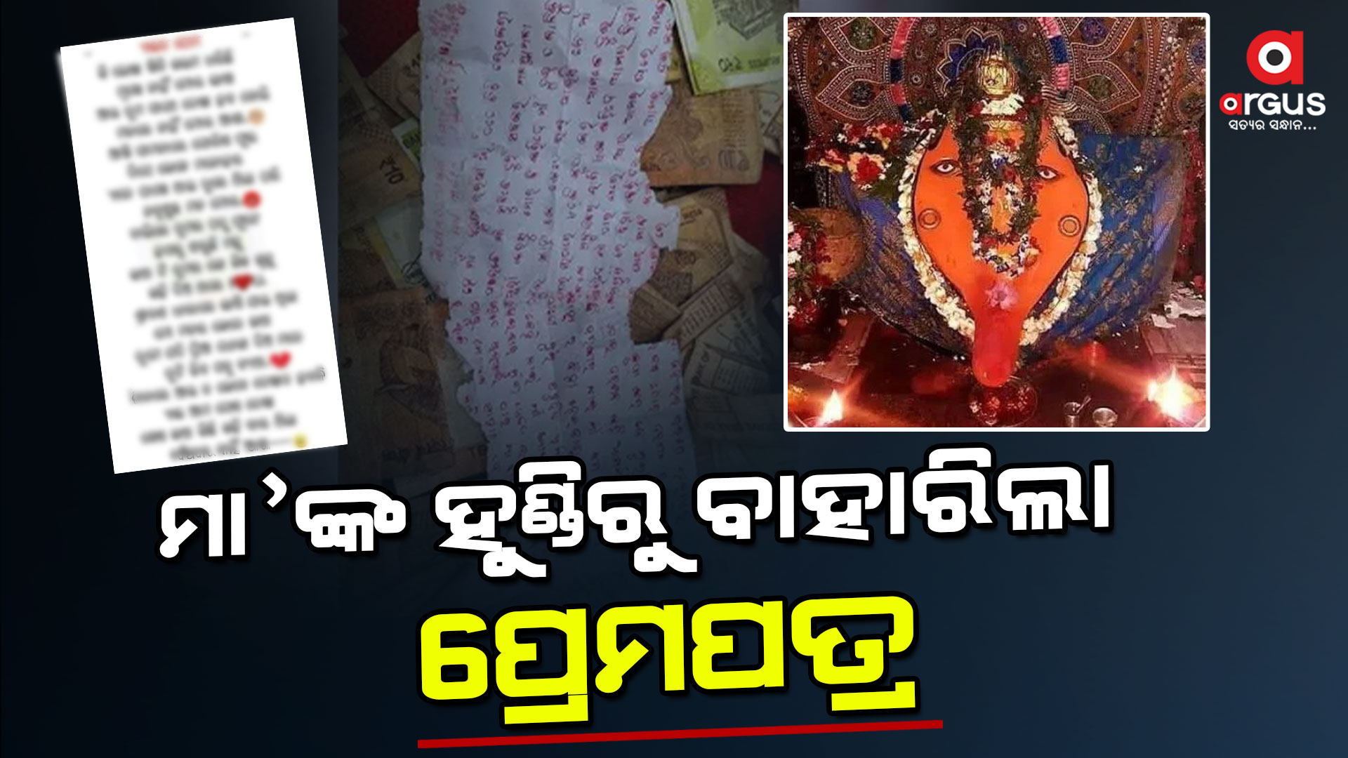 ଅର୍ଗସ ବ୍ୟୁରୋ : ସମଲେଶ୍ଵରୀ ମନ୍ଦିର ହୁଣ୍ତିରୁ ବାହାରିଲା ପ୍ରେମ ପତ୍ର । ୫ ଲକ୍ଷ ୬୮ହଜାର ୧୧୫ ଟଙ୍କା ସହ ସୁନା ଅଲଙ୍କାର ମଧ୍ୟ ମିଲିଛି । ୨୭ ତାରିଖ ମାଁ ସମଲେଶ୍ଵରୀ ମନ୍ଦିରର ପାଇଁ ସମଲେଇ ଯୋଜନା ପ୍ରକଳ୍ପ ଲୋକାର୍ପଣ ଥିବାରୁ ପୂର୍ବରୁ ଏହି ଦାନହୁଣ୍ଡି ଖୋଲା ଯାଇଛି । ଗଣତି ସମୟରେ ଜଣେ ପ୍ରେମିକା ପ୍ରେମରେ ସଫଳ ପାଇଁ ମାଁଙ୍କୁ ଲେଖିଛନ୍ତି ଚିଠି ।