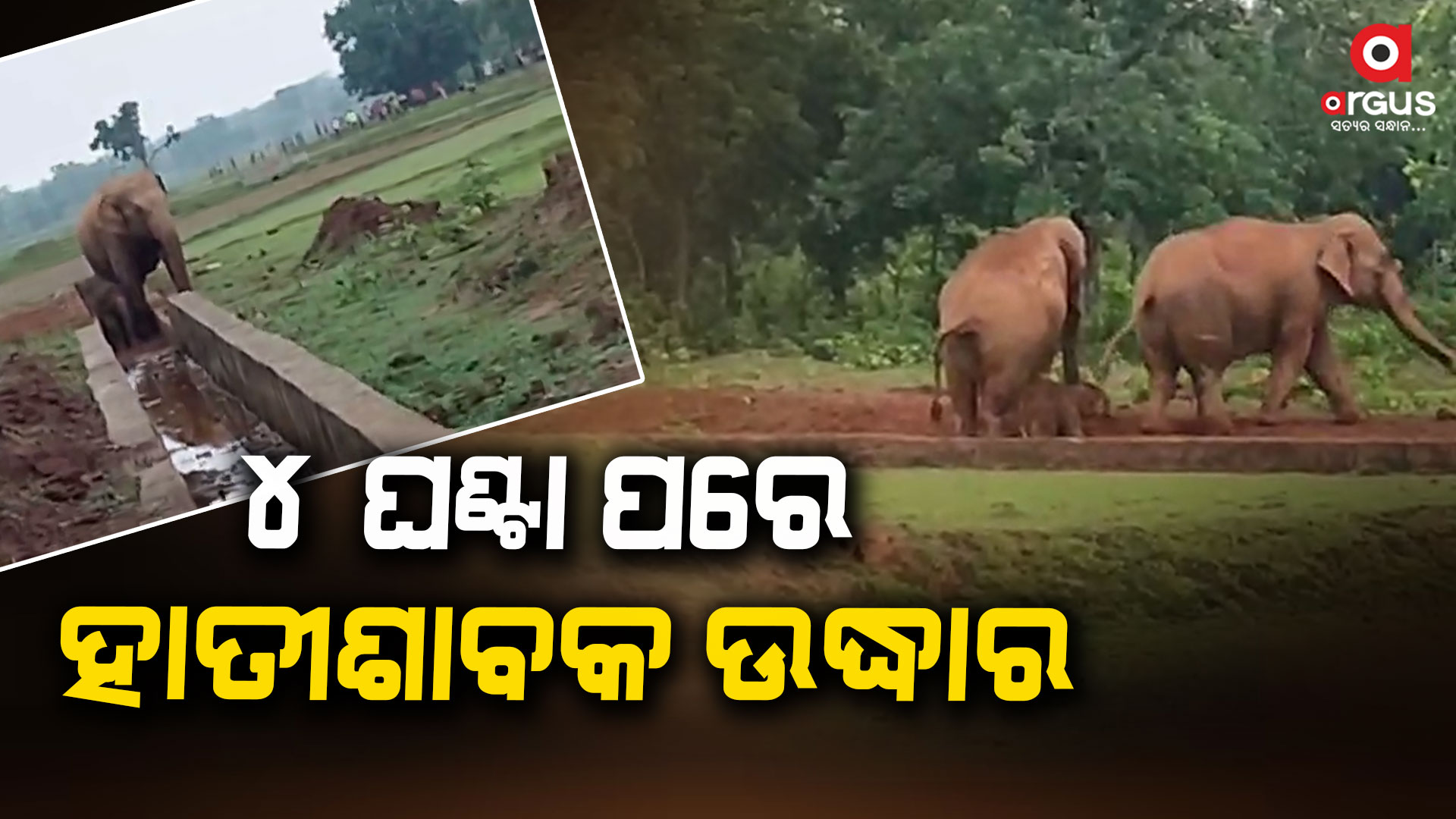 ଦୀର୍ଘ ୪ ଘଣ୍ଟା ପରେ କେନାଲରେ ଖସି ପଡ଼ିଥିବା ହାତୀଶାବକ ଉଦ୍ଧାର