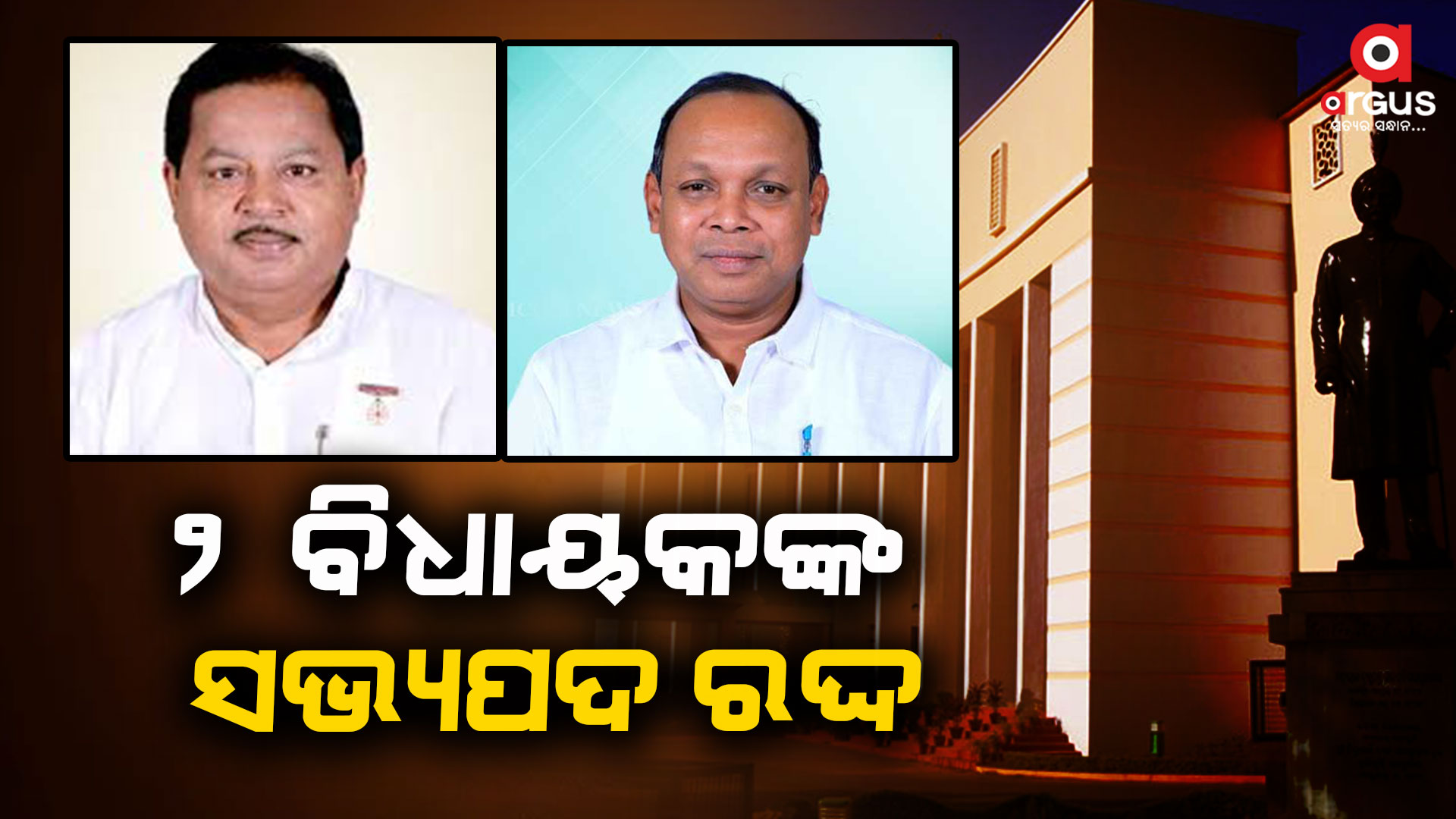 ୨ ବିଧାୟକଙ୍କ ରଦ୍ଦ ହେଲା ସଭ୍ୟପଦ: ଅରବିନ୍ଦ ଓ ପ୍ରେମାନନ୍ଦଙ୍କ ସଭ୍ୟ ପଦ ରଦ୍ଦ