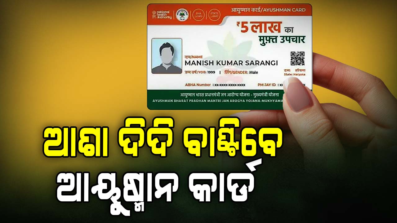 ଆଶା ଦିଦି ବାଣ୍ଟିବେ ଆୟୁଷ୍ମାନ କାର୍ଡ। ସ୍ବାସ୍ଥ୍ୟ ଓ ପରିବାର କଲ୍ୟାଣ ବିଭାଗ ତରଫରୁ ଜନସେବା କେନ୍ଦ୍ର ଓ ୪୮,୦୦୦ ଆଶାକର୍ମୀଙ୍କୁ ଦାୟିତ୍ୱ ଦିଆଯାଇଛି। ଗୋଟିଏ ବ୍ୟକ୍ତି ଗୋଟିଏ କାର୍ଡ ଆଧାରରେ ଆଶାକର୍ମୀମାନେ ଘରକୁ ଘର ଯାଇ ଇ-କେୱାଇସି ମାଧ୍ୟମରେ କାର୍ଡ ବଣ୍ଟନ କରିବେ। ସମସ୍ତେ ନୂଆ ସ୍ବାସ୍ଥ୍ୟ କାର୍ଡ ପାଇବା ପୂର୍ବରୁ ଯଦି କାହାର କୌଣସି ଅସୁବିଧା ହେଲା ଆଧାର କାର୍ଡ ମାଧ୍ୟମରେ ନିର୍ଦ୍ୱନ୍ଦ୍ୱରେ ଚିକିତ୍ସା ପାଇପାରିବେ। ଆଗାମୀ ତିନି ମାସ ମଧ୍ୟରେ ସମସ୍ତ ହିତାଧିକାରୀଙ୍କ ପାଖକୁ କାର୍ଡ ପହଞ୍ଚାଇବା ପାଇଁ ଲକ୍ଷ୍ୟ ରଖିଛନ୍ତି ସରକାର।