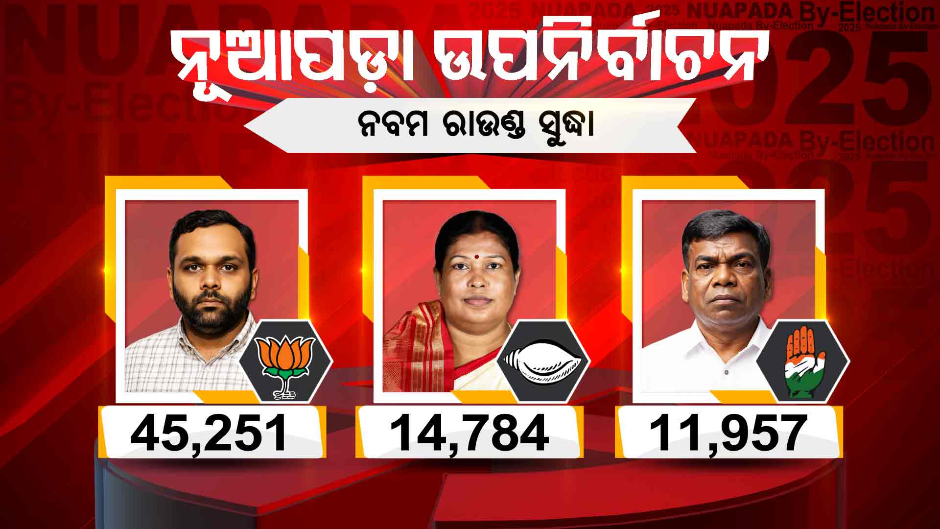 ନୂଆପଡ଼ା ଫଳାଫଳ ସରକାର ଉପରେ ସିଧାସଳଖ କୌଣସି ପ୍ରଭାବ ପକାଉନଥିଲେ ମଧ୍ୟ ପ୍ରମୁଖ ୩ ରାଜନୈତିକ ଦଳ ଭିତରୁ କିଏ ଏକ-ଦୁଇ ଓ ତିନି ନମ୍ବରରେ ରହିବେ ତା’ ଉପରେ ରହିଛି ନଜର ରହିଛି। କାରଣ ଏହି ପୋଜିସନ ହିଁ ତିନି ପ୍ରମୁଖ ରାଜନୈତିକ ଦଳର ଦକ୍ଷତାକୁ ପ୍ରମାଣିତ କରିବ। ନବମ ରାଉଣ୍ଡ ସୁଦ୍ଧା ବିଜେପି ପ୍ରାର୍ଥୀ ଜୟ ଢ଼ୋଲକିଆ ଆଗୁଆ ରହିଛନ୍ତି। ନବମ ରାଉଣ୍ଡ ଭୋଟ ଗଣତି ସୁଦ୍ଧା ବିଜେପି ପ୍ରାର୍ଥୀ ଜୟ ଢ଼ୋଲକିଆ ୪୫,୨୫୧ ଖଣ୍ଡ ଭୋଟରେ ଆଗୁଆ ରହିଛନ୍ତି। ଏହାସହ ବିଜେଡି ୧୪୭୮୪, କଂଗ୍ରେସ ୧୧, ୯୫୭ ଭୋଟ ପାଇଥିବା ଜଣାପଡ଼ିଛି।