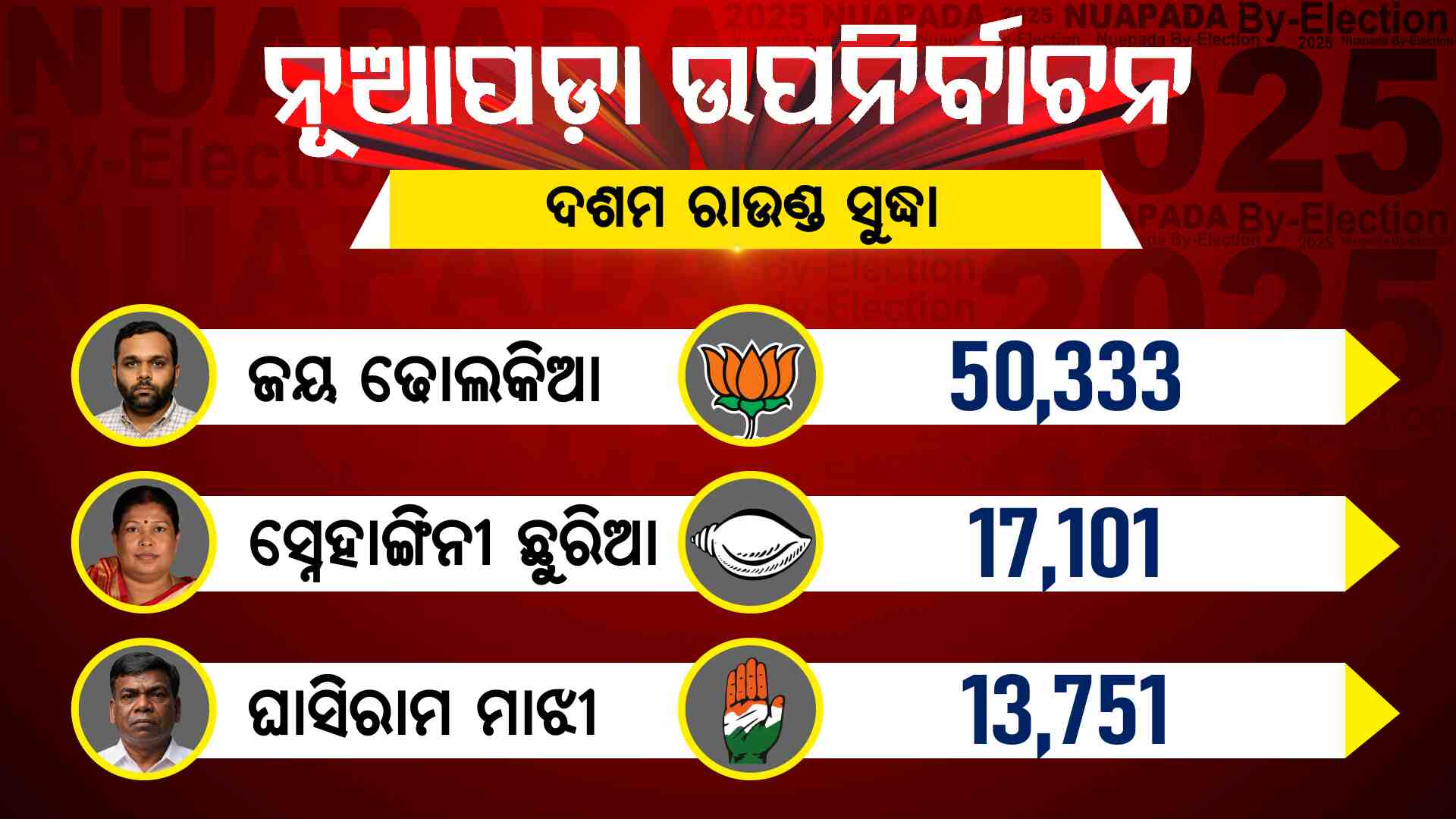 Nuapada By Election / ଟ୍ରେଣ୍ଡ କରୁଛି ବିଜେପି: ଦଶମ ରାଉଣ୍ଡ ସୁଦ୍ଧା ଆଗରେ ଜୟ ଢ଼ୋଲକିଆ