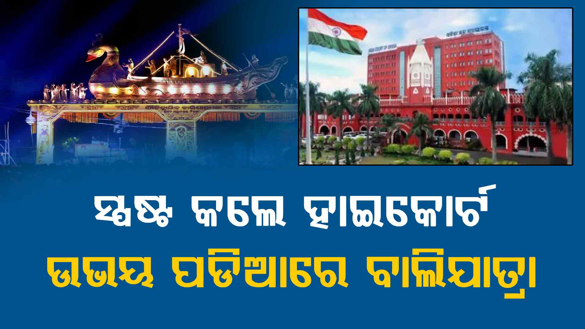 ଉଭୟ ପଡ଼ିଆରେ ଆୟୋଜିତ ହେବ କଟକର ଐତିହାସିକ ବାଲିଯାତ୍ରା । ଏ ନେଇ ସ୍ପଷ୍ଟ କରିଛନ୍ତି ହାଇକୋର୍ଟ । କଟକ ଜିଲ୍ଲାପାଳଙ୍କ ସତ୍ୟପାଠ ଦାଖଲ ପରେ ଉଭୟ ପଡ଼ିଆରେ ବାଲିଯାତ୍ରା ଆୟୋଜନ ନେଇ ସ୍ପଷ୍ଟ କରିଛନ୍ତି ହାଇକୋର୍ଟ । ବାଲିଯାତ୍ରା ଆୟୋଜନ ସମୟରେ ଶବ୍ଦ ପ୍ରଦୂଷଣ ଉପରେ ନିୟନ୍ତ୍ରଣ ସହ ଉଠା ଦୋକାନୀଙ୍କୁ ବ୍ୟବସ୍ଥିତ ଢଙ୍ଗରେ ଥଇଥାନ କରିବା ପାଇଁ ନିର୍ଦ୍ଦେଶ ଦେଇଛନ୍ତି ହାଇକୋର୍ଟ ।