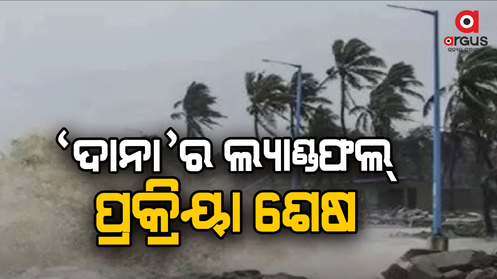 ଅର୍ଗସ ବ୍ୟୁରୋ: ବାତ୍ୟା 'ଦାନା'ର ଲ୍ୟାଣ୍ଡଫଲ୍ ପ୍ରକ୍ରିୟା ଶେଷ ହୋଇଛି । ଦୁର୍ବଳ ହେଉଛି ବାତ୍ୟା ଦାନା । ଧିରେ ଧିରେ କମୁଛି ପବନର ବେଗ ।