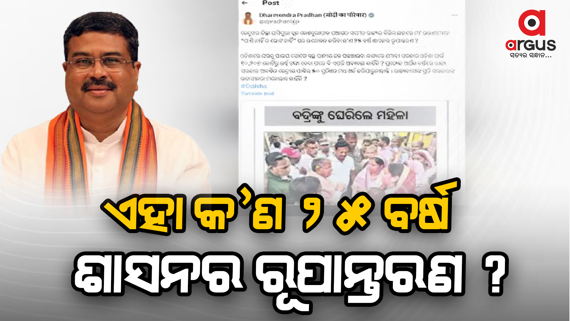 ଅର୍ଗସ ବ୍ୟୁରୋ: କେନ୍ଦୁଝର କେଶଦୁରାପାଳରେ ପାଣି ପାଇଁ ବଦ୍ରିନାରାୟଣ ପାତ୍ରଙ୍କୁ ମହିଳା ଘେରିବା ପ୍ରସଙ୍ଗ । ଟ୍ୱିଟ୍ କରି ବର୍ଷିଲେ କେନ୍ଦ୍ରମନ୍ତ୍ରୀ ଧର୍ମେନ୍ଦ୍ର ପ୍ରଧାନ । ଏହା କ’ଣ ୨୫ ବର୍ଷ ଶାସନର ରୂପାନ୍ତରଣ ? ବୋଲି ପ୍ରଶ୍ନ କରିଛନ୍ତି କେନ୍ଦ୍ରମନ୍ତ୍ରୀ । କେନ୍ଦୁଝର କେଶଦୁରାପାଳ ପଞ୍ଚାୟତ ସମେତ ରାଜ୍ୟର ବିଭିନ୍ନ ସ୍ଥାନରେ ମା’ ଭଉଣୀମାନେ “ପାଣି ନାହିଁ ତ ଭୋଟ ନାହିଁ” ସ୍ୱର ଉତ୍ତୋଳନ କରୁଛନ୍ତି । ଓଡ଼ିଶାରେ ଘରକୁ ପାଇପ ଯୋଗେ ସ୍ୱଚ୍ଛ ପାନୀୟ ଜଳ ପହଞ୍ଚାଇବା ଲକ୍ଷ୍ୟରେ ମୋଦି ସରକାର ଓଡ଼ିଶା ପାଇଁ ୧୦,୨୦୭ କୋଟିରୁ ଅଧିକ ଟଙ୍କା ଦେଇଛନ୍ତି । ତଥାପି ଏପରି ଅବ୍ୟବସ୍ଥା କାହିଁକି ?