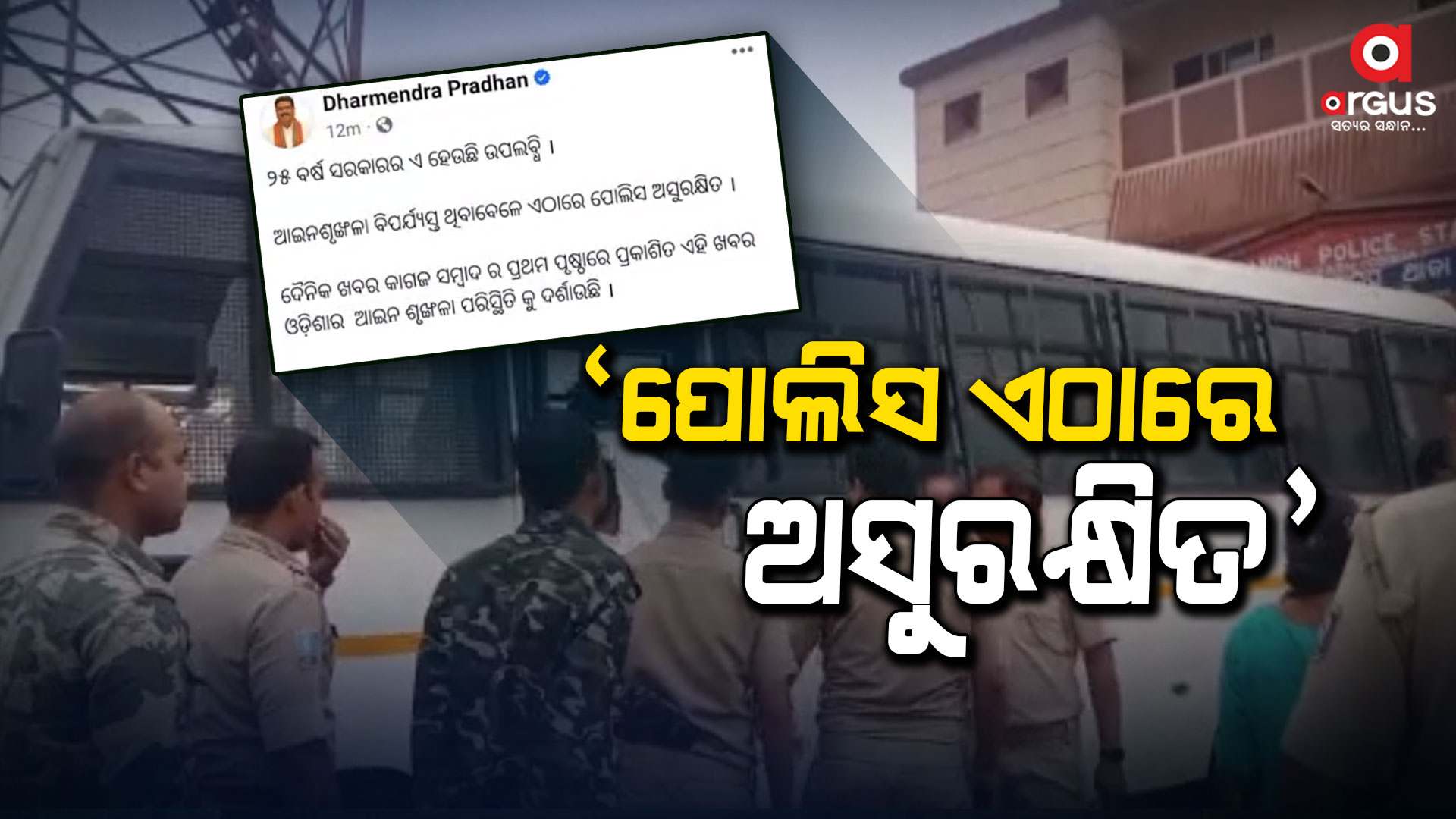 ଅର୍ଗସ ବ୍ୟୁରୋ: ରାଜ୍ୟରେ ବିପର୍ଯ୍ୟସ୍ତ ଆଇନ ଶୃଙ୍ଖଳା । ବରଗଡ଼ ଝାରବନ୍ଧ ନିତ୍ୟାନନ୍ଦପୁର ଗାଁରେ ପୋଲିସ ଉପରକୁ ସଂଘବଧ ଆକ୍ରମଣରେ କେନ୍ଦ୍ରମନ୍ତ୍ରୀ ଧର୍ମେନ୍ଦ୍ର ପ୍ରଧାନଙ୍କ ଉଦବେଗ । ସୋସିଆଲ ମିଡିଆରେ Xରେ ପୋଷ୍ଟ କରିଛନ୍ତି ସେ ଲେଖିଛନ୍ତି, ଏ ହେଉଛି ୨୫ ବର୍ଷ ସରକାରର ଉପଲବ୍ଧି । ପୋଲିସ ଏଠାରେ ଅସୁରକ୍ଷିତ । ପଦ୍ମପୁର ଉପଖଣ୍ଡ ଝାରବନ୍ଧ ଥାନା ନିତ୍ୟାନନ୍ଦପୁର ଗାଁର ଜଣେ ଗଞ୍ଜେଇ ବ୍ୟବସାୟୀକୁ ଧରିବା ବେଳେ ଝାରବନ୍ଧ ପୋଲିସ ଆକ୍ରମଣର ଶିକାର ହୋଇଥିଲା l ବସନା ଥାନା କେଶରପୁର ଗାଁର ଯଦୁନାଥ ଶ୍ରୀବସ ଓ ଡିଲେଶ୍ବର ଗହୀର ବାଇକରେ ଗଞ୍ଜେଇ ନିତ୍ୟାନନ୍ଦପୁର ଗାଁର ନାନୁ ସାହୁଙ୍କ ଠାରୁ ୩ କେଜି ଗଞ୍ଜେଇ ନେଉଥିବା ସମୟରେ ପୋଲିସ ଦ୍ବାରା ଧରା ପଡ଼ିଥିଲେ । ଏହି ସମୟରେ ପଛରେ ଥିବା ନାନୁ ସାହୁ ପୋଲିସକୁ ଦେଖି ଫେରାର ହୋଇଥିଲା ।