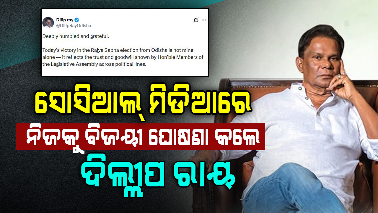 ମୋ ଉପରେ ସମସ୍ତଙ୍କ ଭରସା ଓ ବିଶ୍ଵାସ ପାଇଁ ଯୋଡ଼ ହସ୍ତରେ ଧନ୍ୟବାଦ ଜଣାଉଛି ବୋଲି ଲେଖିଛନ୍ତି ଦିଲ୍ଲୀପ ରାୟ । ଦିଲ୍ଲୀପ ରାୟଙ୍କ ସୋସିଆଲ୍ ମିଡିଆ ପୋଷ୍ଟ ସମୟରେ ବିଧିବଦ୍ଧ ଭାବେ ରାଜ୍ୟସଭା ନିର୍ବାଚନ ଫଳାଫଳ ପ୍ରକାଶ ପାଇନାହିଁ ।
