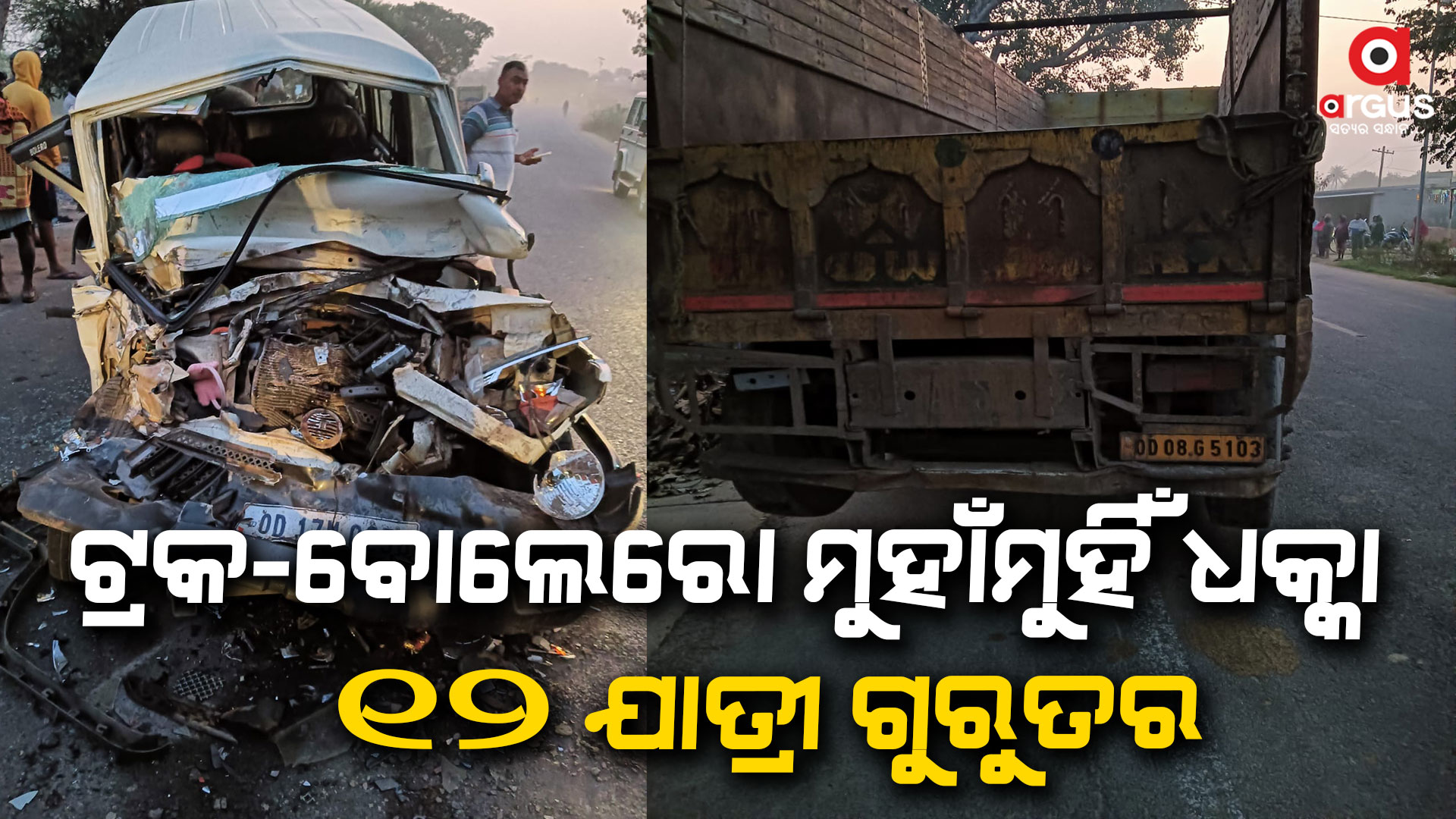 ଟ୍ରକ-ବୋଲେରୋ ମୁହାଁମୁହିଁ ଧକ୍କା, 12 ଯାତ୍ରୀ ଗୁରୁତର