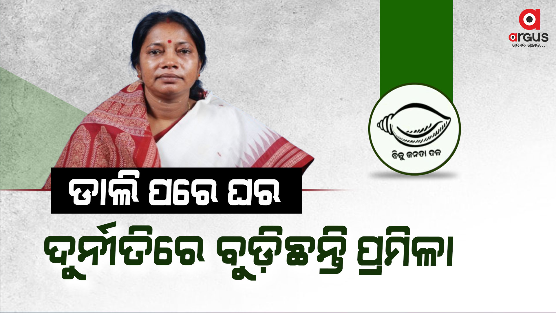 ✨ବିଜେଡି ସରକାରରେ ମନ୍ତ୍ରୀ ଥିବା ବେଳେ ଡାଲି ଦୁର୍ନୀତିରେ ସାମିଲ ଥିଲେ ପ୍ରମିଳା । ଯାହା ଜଣାପଡ଼ିବା ପରେ ତତ୍କାଳୀନ ମୁଖ୍ୟମନ୍ତ୍ରୀ ନବୀନ ପଟ୍ଟନାୟକ ତାଙ୍କୁ ମନ୍ତ୍ରୀମଣ୍ଡଳରୁ ବହିଷ୍କାର କରିଥିଲେ । ଆଉ ଏବେ ଦୁର୍ନୀତି ଟଙ୍କାରେ ଦଳୀୟ ପାଣ୍ଠି ଯୋଗାଡ଼ କରି ବିଜେଡିର ପ୍ରୋମିନେଣ୍ଟ ଫେସ ବନିଥିଲେ ପ୍ରମିଳା । ଯାହା ଏବେ ବି ଦେଖିବାକୁ ମିଳେ । ସୂଚନା ଅଧିକାର ଆଇନ ବଳରେ ସାମ୍ନାକୁ ଆସିଥିବା ଏ ତଥ୍ୟ ପ୍ରମିଳା ଗୁମର ଖୋଲିବା ସହ ବିଜେଡିର ପିସି ମଷ୍ଟ ଷ୍ଟପ୍ ନାରା ପଛର ସତକୁ ଧରା ପକେଇ ଦେଇଛି। ପ୍ରମିଳାଙ୍କ ବିରୋଧରେ ଆସିଥିବା ସଂଗୀନ ଅଭିଯୋଗ ପରେ ଚୁପ୍ ବସିଛି ବିଜେଡି। ଯେଉଁ ଦଳ ଦିନେ ଫାଇବ୍ ଟିରେ ଦୁର୍ନୀତି ମୁକ୍ତ ସରକାର ଓ ପିସି ମଷ୍ଟ ଷ୍ଟପ୍ ର ନାରା ଦେଉଥଛିଲା ସେ ଦଳ କୁଆଡେ ଗଲା ବୋଲି ପ୍ରଶ୍ନ ଉଠାଇଛି ବିଜେପି। ଏ ମାମଲାରେ ନବୀନଙ୍କ ସ୍ପଷ୍ଟୀକରଣ ଦାବି କରିଛି ଦଳ।