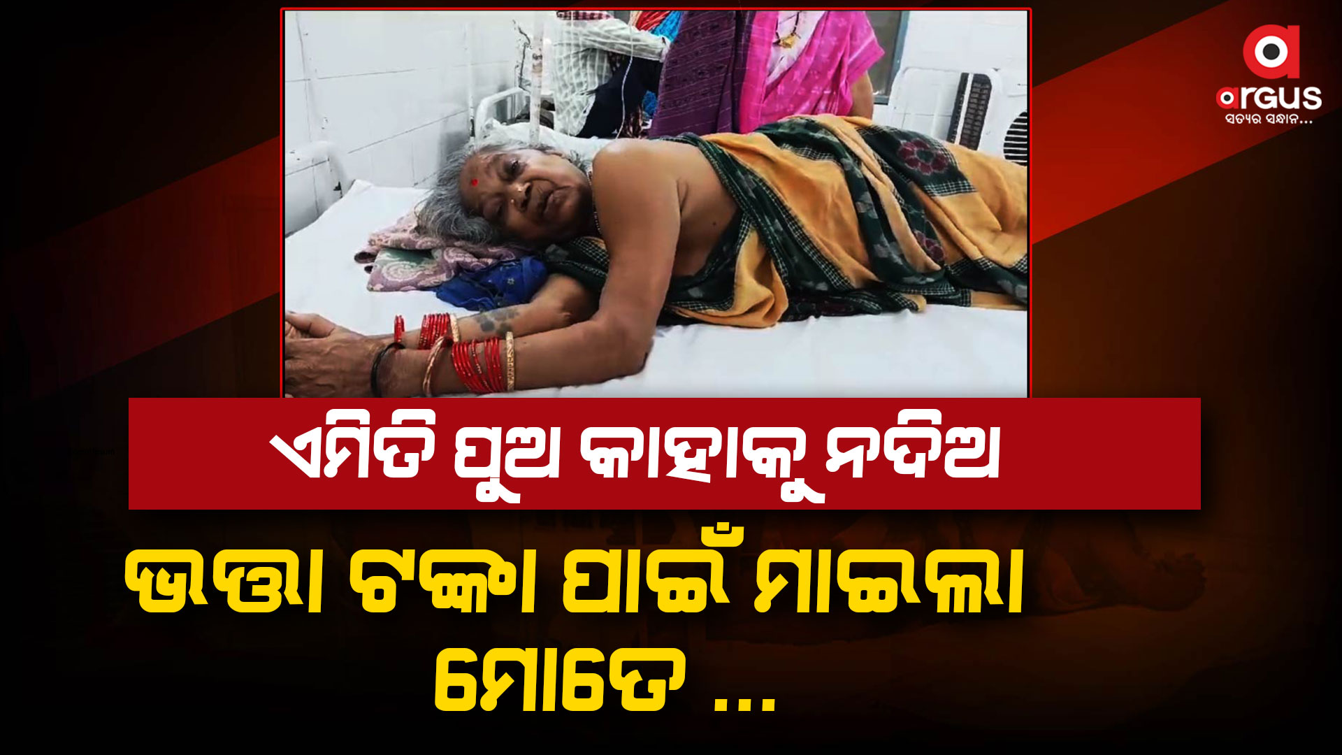 ଦେବକୀ ରାଉତଙ୍କୁ ତାଙ୍କ ସାନ ପୁଅ ପ୍ରମୋଦ ରାଉତ ଭତା ଟଙ୍କା ମାଗିଥିଲେ l ଭତ୍ତା ଟଙ୍କା ନଦେବାରୁ ନିର୍ଦ୍ଦୟ ଭାବେ ପିଟିଥିଲେ ସାନପୁଅ। ଯନ୍ତ୍ରଣାରେ ଛଟପଟ ହେଉଥିବାବେଳେ ବୃଦ୍ଧା ଜଣଙ୍କ ନିଜ ବଡ ପୁଅକୁ ମେଡିକାଲ ନେବା ପାଇଁ ଅନୁରୋଧ କରିଥିଲେ l କିନ୍ତୁ ବଡ ପୁଅ ରଞ୍ଜନ ରାଉତ ମା ଦେବକୀ କୁ ମେଡିକାଲ୍ ନେବା ପରିବର୍ତ୍ତେ ବଡ ଝିଅ ଘରେ ଛାଡ଼ି ଦେଇଥିଲେ l ତେବେ ଝିଅ ମାନେ ତାଙ୍କୁ ଆସିକା ମେଡିକାଲକୁ ଚିକିତ୍ସା ପାଇଁ ଆଣିଥିଲେ । ବୃଦ୍ଧାଙ୍କର ବାମ ହାତ ଭାଙ୍ଗି ଯାଇଥିବା ବେଳେ ଅଣ୍ଟାରେ ଆଘାତ ଲାଗିଛି l ଯେଉଁ ମା ଦଶ ମାସ ଦଶ ଦିନ ଧରି ଗର୍ଭ କଷ୍ଟ ସହି ନିଜ ପୁଅକୁ ଜନ୍ମ ଦେଇଥିଲା ସେଇ ପୁଅ ଏବେ ମା ପାଇଁ ସାଜିଲା ଜମ। ଅଧାଦରମରା କଲା ସାମାନ୍ୟ ଭତ୍ତା ଟଙ୍କା ପାଇଁ। ମା ଏବେ କହୁଛି ପୁଅ ଜନ୍ମ କରି ଭୁଲ କରିଦେଲି।