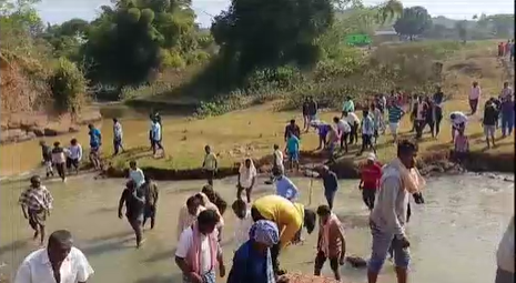 Koraput, Feb 12: In what has come as a sharp contrast to the Odisha Government's development claim, villagers carried the dead body of a man by crossing a river through its water dangerously to reach the crematorium ground due to lack of a bridge over the river.