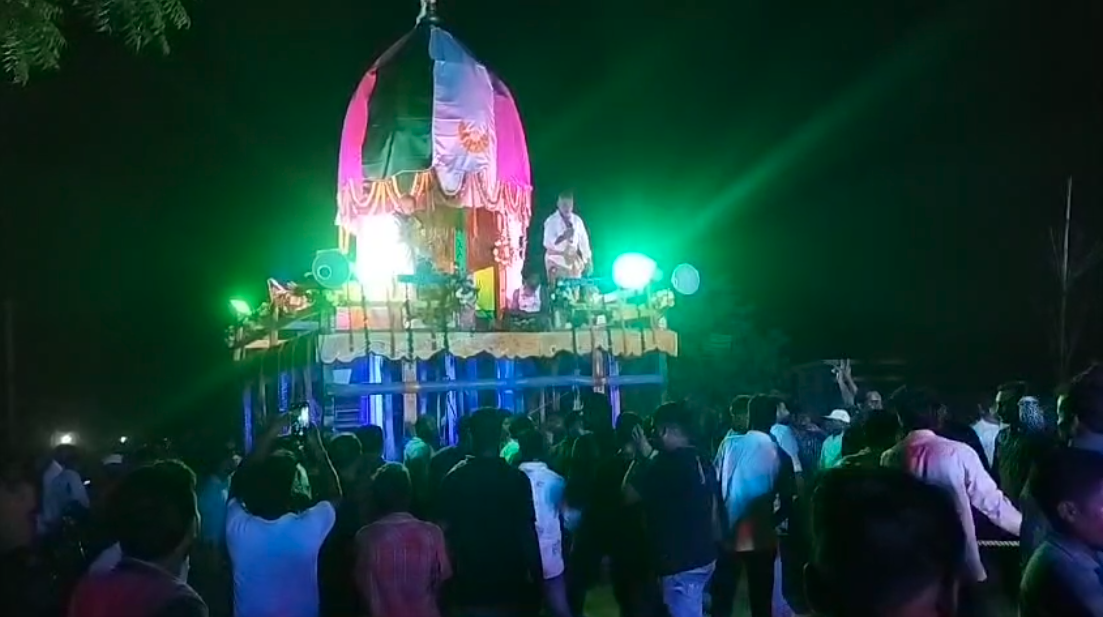 According to the customary practices, the village head, Bhagirathi Kar of the present time, was crowned as king for a day and escorted him in a rally through the village amid firecracker explosions and the beating of drums and other traditional musical instruments in the evening. Later, he conducted the Chhera Pahmara (sweeping of floor) ritual on the Rath after which the car was pulled by devotees to the Mausi Maa house.