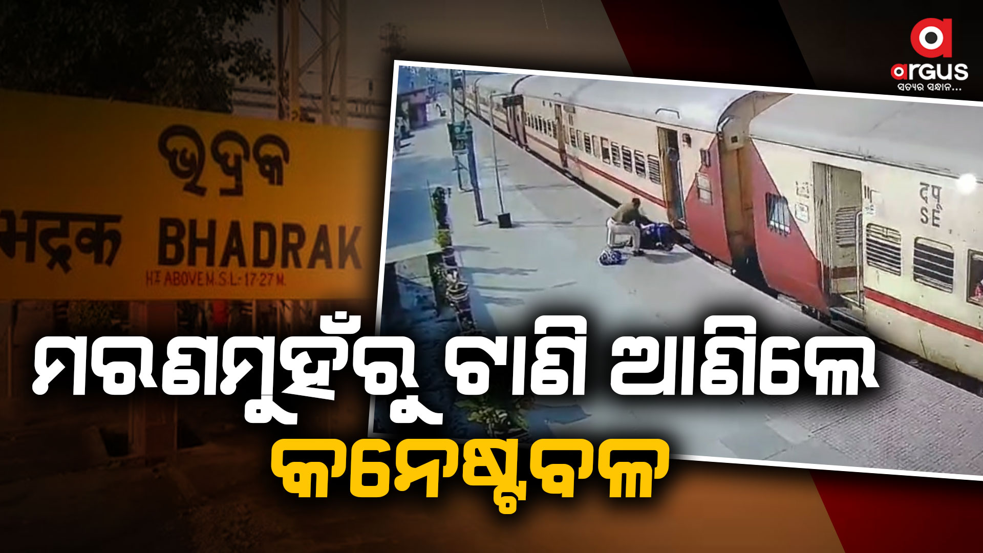 ଭଦ୍ରକ : ମରଣ ମୁହଁରୁ ଯିଏ ଟାଣି ଆଣେ ତାଙ୍କୁ ଅଧା ବିଧାତା ବୋଲି ଆକ୍ଷା ଦିଆଯାଏ। ସେହି ଅଧା ବିଧାତା ପାଲଟି ଜଣେ ମହିଳାଙ୍କ ଜୀବନ ରକ୍ଷା କରିଛନ୍ତି GRP କନେଷ୍ଟବଳ ପ୍ରତାପ ଚନ୍ଦ୍ର ଗିରି। ହଠାତ୍ ଜଣେ ସ୍ତ୍ରୀଲୋକ ଚଳନ୍ତା ଟ୍ରେନରୁ ଓହ୍ଲାଇଲାବେଳେ ଖସି ପଡିଥିଲେ। ସେହି ସମୟରେ ଡ୍ୟୁଟିରେ ଥିଲେ ପ୍ରତାପ। ତୁରନ୍ତ ଦୌଡିଦୌଡି ଯାଇ ଉକ୍ତ ମହିଳାଙ୍କୁ ଏକ ବଡ ଦୁର୍ଘଟଣାରୁ ରକ୍ଷା କରିଥିଲେ । ନଚେତ ସ୍ତ୍ରୀଲୋକ ଜଣଙ୍କ ଟ୍ରେନରେ କଟି ପ୍ରାଣ ହରାଇଥାନ୍ତେ।
