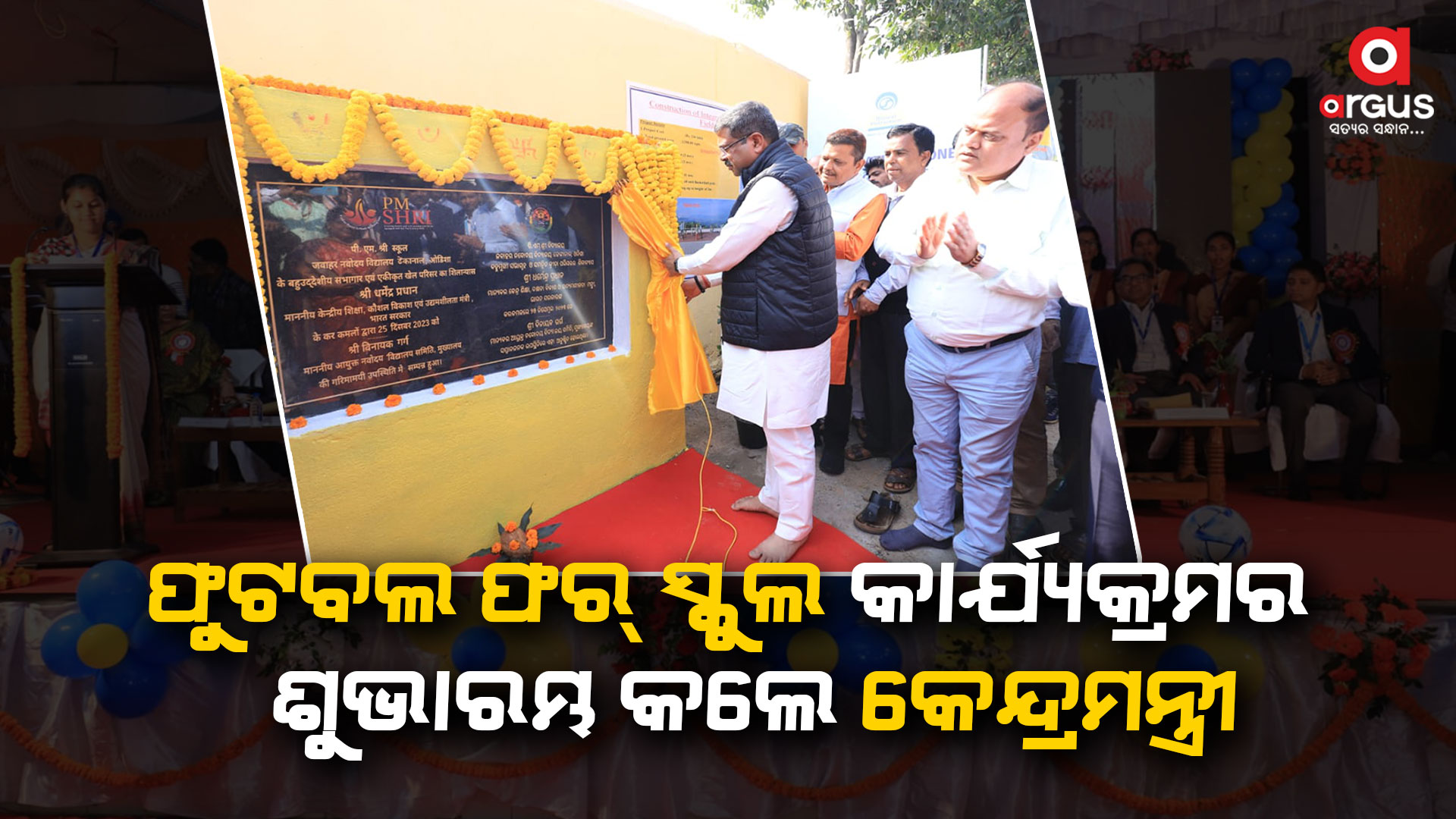 ଏହି ଅବସରରେ ପ୍ରଧାନମନ୍ତ୍ରୀ ନରେନ୍ଦ୍ର ମୋଦିଙ୍କ କଳ୍ପନାରେ ଛାତ୍ରଛାତ୍ରୀଙ୍କୁ ଫୁଟବଲ୍ ଖେଳ ପ୍ରତି ପ୍ରୋତ୍ସାହିତ କରିବା ଉଦ୍ଦେଶ୍ୟରେ ଫୁଟବଲ ଫର୍ ସ୍କୁଲ କାର୍ଯ୍ୟକ୍ରମର ଶୁଭାରମ୍ଭ ସହ ଛାତ୍ରଛାତ୍ରୀଙ୍କୁ ଫୁଟବଲ ବିତରଣ କରିଥିଲେ କେନ୍ଦ୍ରମନ୍ତ୍ରୀ । ସେ କହିଥିଲେ ଭାରତରେ ଅଲ୍ ଇଣ୍ଡିଆ ଫୁଟବଲ ଫେଡେରେସନ ସହଯୋଗରେ ମୋଟ ୭୪୦ ଟି ଜିଲ୍ଲାରେ ୧ ଲକ୍ଷ ୫୫ ହଜାର ସ୍କୁଲରେ ୮୨ ଲକ୍ଷ ୪ ହଜାର ୨୭୯ ଫୁଟବଲ ବିତରଣ କରାଯାଉଛି । ଯେଉଁଥିରେ ଫିଫା ପ୍ରାୟ ୧୧ ଲକ୍ଷ ୧୫ ହଜାରରୁ ଉର୍ଦ୍ଧ୍ୱ ଫୁଟବଲ ଦେଉଛି । ଓଡ଼ିଶାରେ ପ୍ରାୟ ୫ ହଜାର ୪୨୭ ଟି ସ୍କୁଲରେ ପାଖାପାଖି ୨୭ ହଜାର ୮୬୮ ଟି ଫୁଟବଲ ବିତରଣ କରାଯିବାର କାର୍ଯ୍ୟକ୍ରମ ଆରମ୍ଭ ହୋଇଛି । ଢେଙ୍କାନାଳରେ ୧୭୮ଟି ସ୍କୁଲରେ ୮୭୦ଟି ଫୁଟବଲ ବିତରଣ କରାଯିବ । କେବଳ ଏତିକି ନୁହେଁ ଖେଳ ଶିକ୍ଷକ ମାନଙ୍କୁ ଆଧୁନିକ କୌଶଳର ପ୍ରଶିକ୍ଷଣ ଦେବା ପାଇଁ ମଧ୍ୟ ଯୋଜନା ହୋଇଛି । ଖେଳରେ ସ୍ପିରିଟ, ଶୃଙ୍ଖଳା ଅଛି । ଖେଳରେ ହାର ଜିତ ଥାଏ ଏବଂ ହାରିଲେ ହିଁ ପ୍ରେରଣା ମିଳିଥାଏ । ଏଥିପାଇଁ ଜାତୀୟ ଶିକ୍ଷା ନୀତିରେ ଛାତ୍ରଛାତ୍ରୀଙ୍କୁ ଶିକ୍ଷା ସହ ସେମାନଙ୍କ ଦକ୍ଷତା ଓ ପ୍ରତିଭାର ବିକାଶ କରିବା ପାଇଁ ୮ଟି ଗୁରୁତ୍ୱପୂର୍ଣ୍ଣ ବିଷୟରେ ଶିକ୍ଷା ଦିଆଯିବ । ସେ ଗୁଡିକ ହେଲା ଭାଷା, ଗଣିତ, ବିଜ୍ଞାନ, ପରିବେଶ ବିଜ୍ଞାନ, ସାମାଜିକ ବିଜ୍ଞାନ, କଳା, କାରିଗରୀ ତଥା ଦକ୍ଷତା ବିକାଶ ଓ ଧନ୍ଦାମୂଳକ ଶିକ୍ଷା ପଢାଯିବ । ଯେତେବେଳେ ୨୦୩୬ ଅଲିମ୍ପିକ୍ସ ପାଇଁ ଆମ ଦେଶ ପ୍ରସ୍ତୁତି ଆରମ୍ଭ କରିଛି, ସେ ଦୃଷ୍ଟିରୁ ଫୁଟବଲ୍ କାର୍ଯ୍ୟକ୍ରମ ଉପଯୋଗୀ ହେବ ।