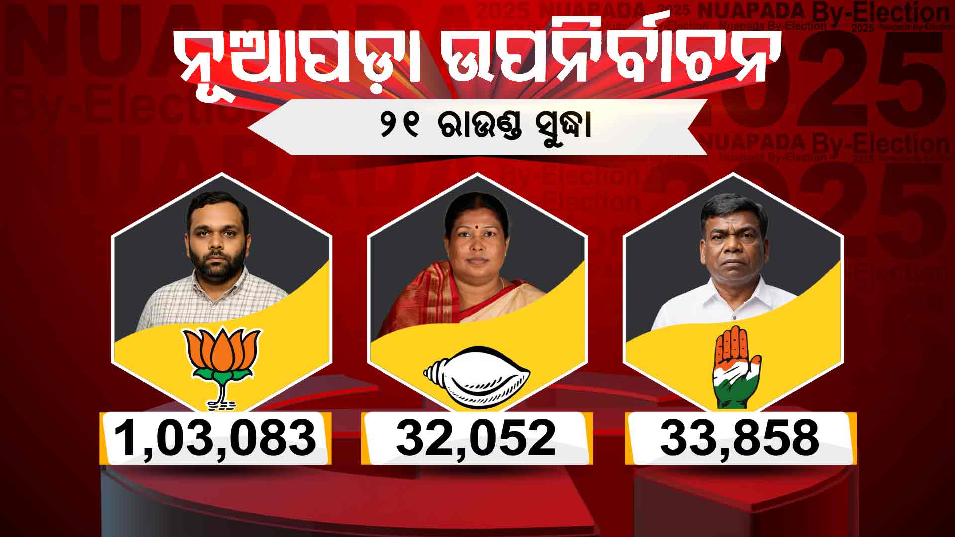 Nuapada By Election / ୨୧ ରାଉଣ୍ଡ ସୁଦ୍ଧା ଜୟ ଢୋଲକିଆଙ୍କୁ ଲକ୍ଷେରୁ ଅଧିକ ଭୋଟ୍ ୬୯ ହଜାର ୨୨୫ ଭୋଟ୍ରେ ବିଜେପି ଆଗୁଆ