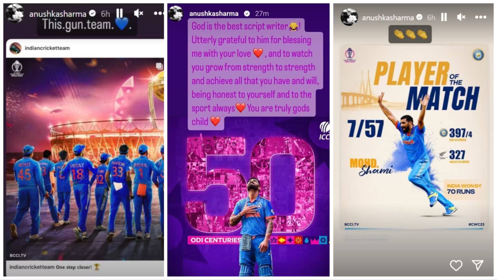 Cricket News: Anushka Sharma Blows Flying Kisses to Virat Kohli After his 50th ODI Century, Calls her God's Child