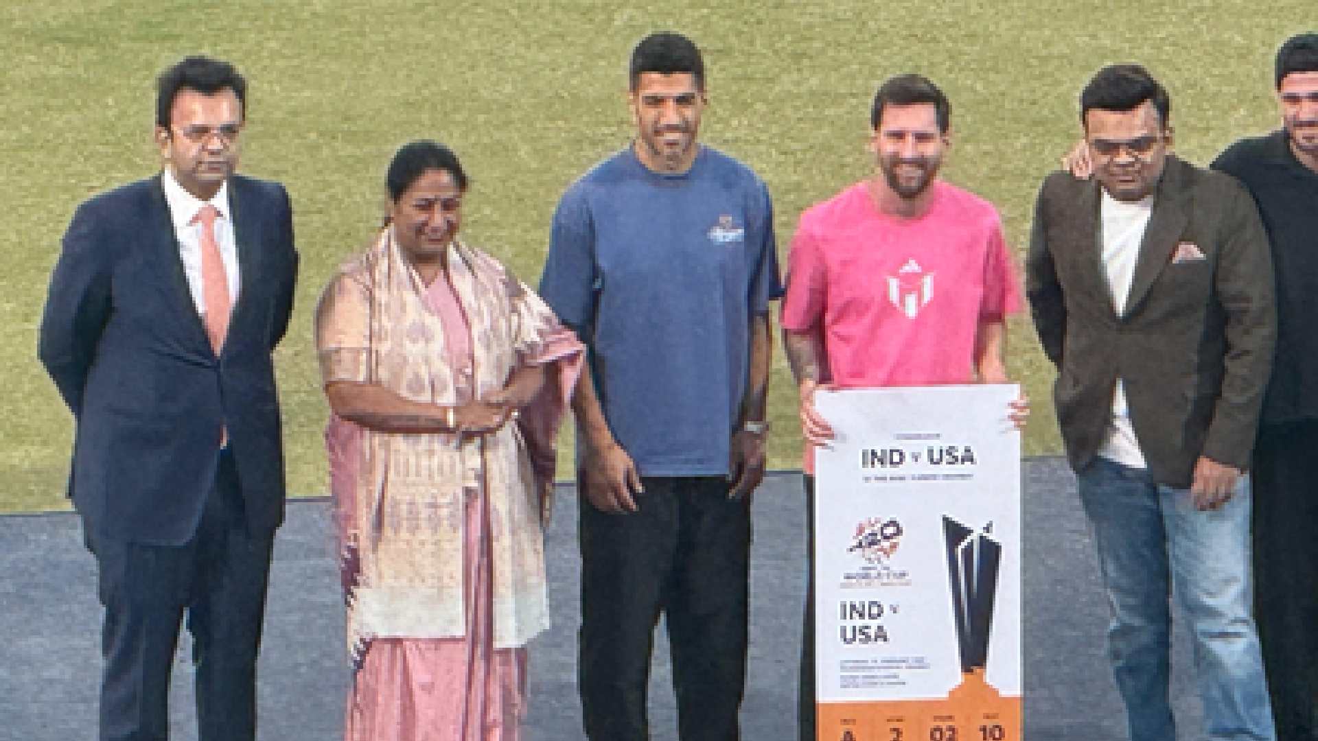 - ICC chief Jay Shah presented Messi with India vs USA T20 World Cup tickets and a Team India jersey.