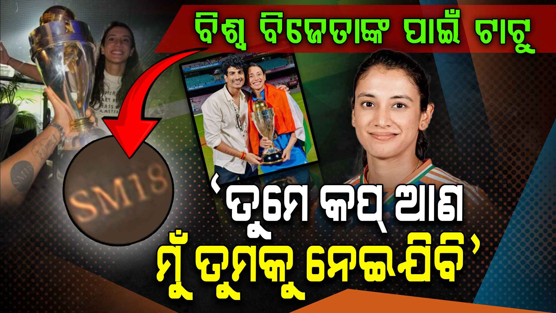 Womens World Cup / କାନ୍ଧରେ ତ୍ରିରଙ୍ଗା, ହାତରେ ସ୍ମୃତି ମନ୍ଧାନାଙ୍କ ନାଁର ଟାଟୁ କଲେ ପ୍ରେମିକ ପଲାଶ