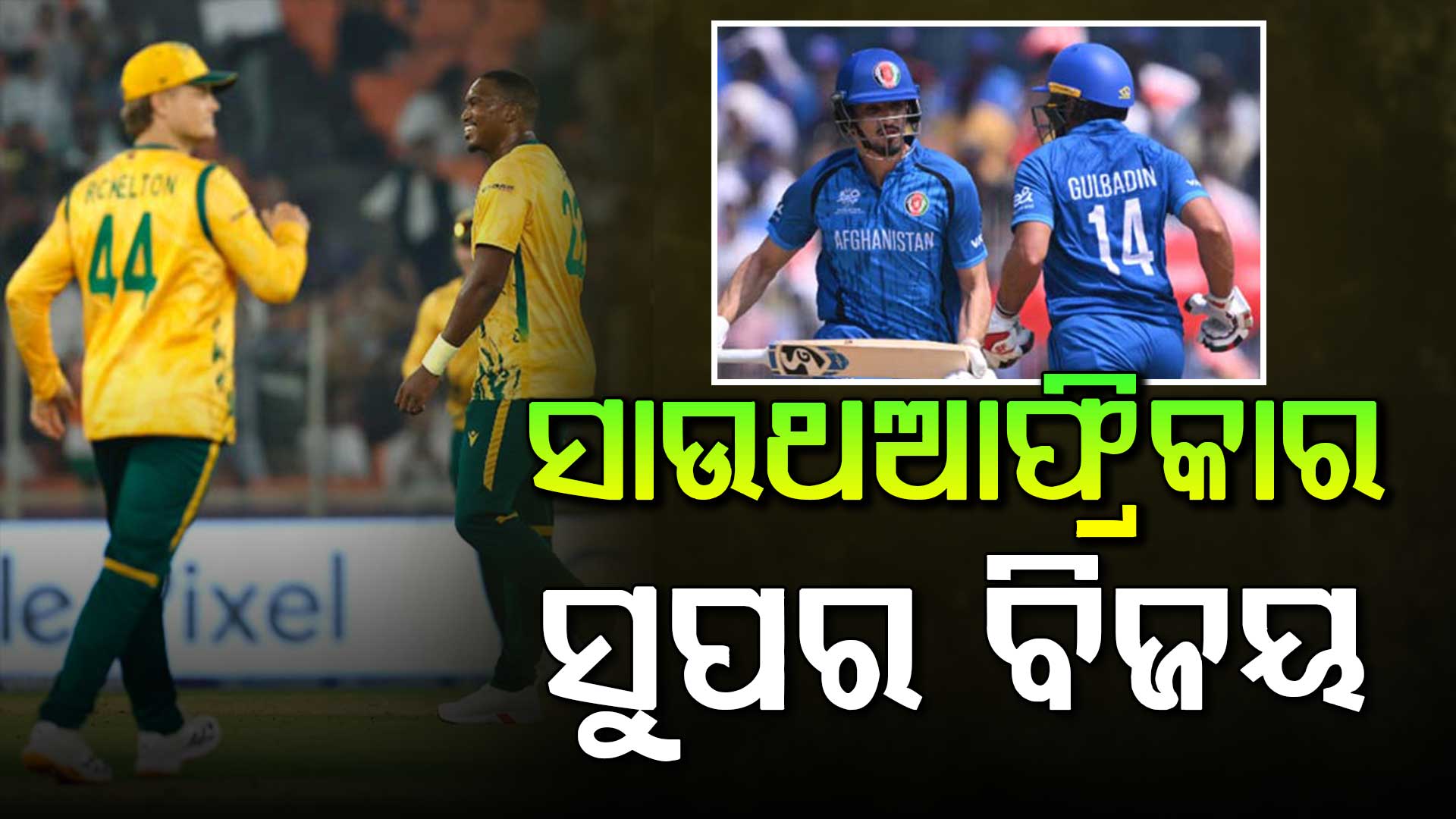 ଆଜି ଅହମ୍ମଦାବାଦ ଗ୍ରାଉଣ୍ଡରେ ଟି-୨୦ ବିଶ୍ୱକପ୍ ୨୦୨୬ର ସବୁଠାରୁ ରୋମାଞ୍ଚକର ମ୍ୟାଚ୍ ଖେଳାଯାଇଥିଲା। ଦକ୍ଷିଣ ଆଫ୍ରିକା ଦ୍ୱାରା ଧାର୍ଯ୍ୟ ୧୮୭ ରନ୍ ଟାର୍ଗେଟକୁ ପିଛା କରି ଆଫଗାନିସ୍ତାନ ମଧ୍ୟ ନିର୍ଦ୍ଧାରିତ ୨୦ ଓଭରରେ ୧୮୭ ରନ୍ କରିଥିଲା । ଯାହା ପରେ ମ୍ୟାଚର ଫୈସଲା ସୁପର ଓଭର ଜରିଆରେ ନିର୍ଣ୍ଣୟ ହୋଇଥିଲା ।