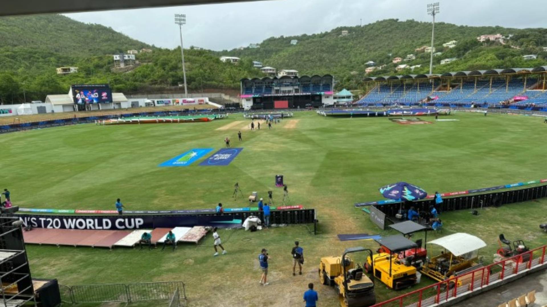 Ahead of the clash between the heavyweights, the venue in Saint Lucia is currently facing some downpours with gloomy conditions.
